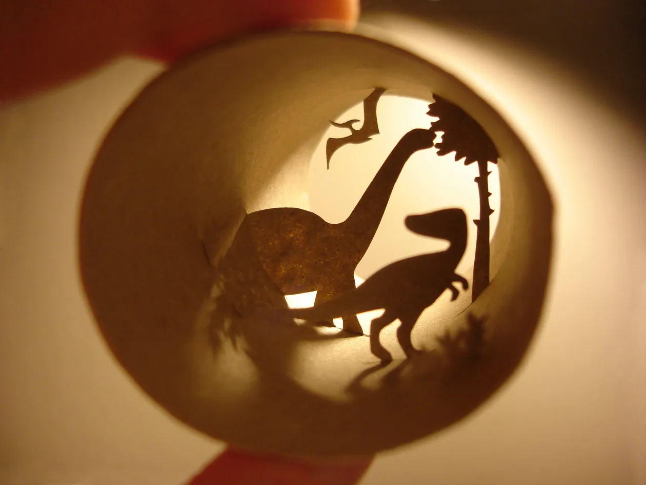 Toilet paper roll art of prehistoric earth with dinosaurs. (Photo by Anastassia Elias/Caters News)