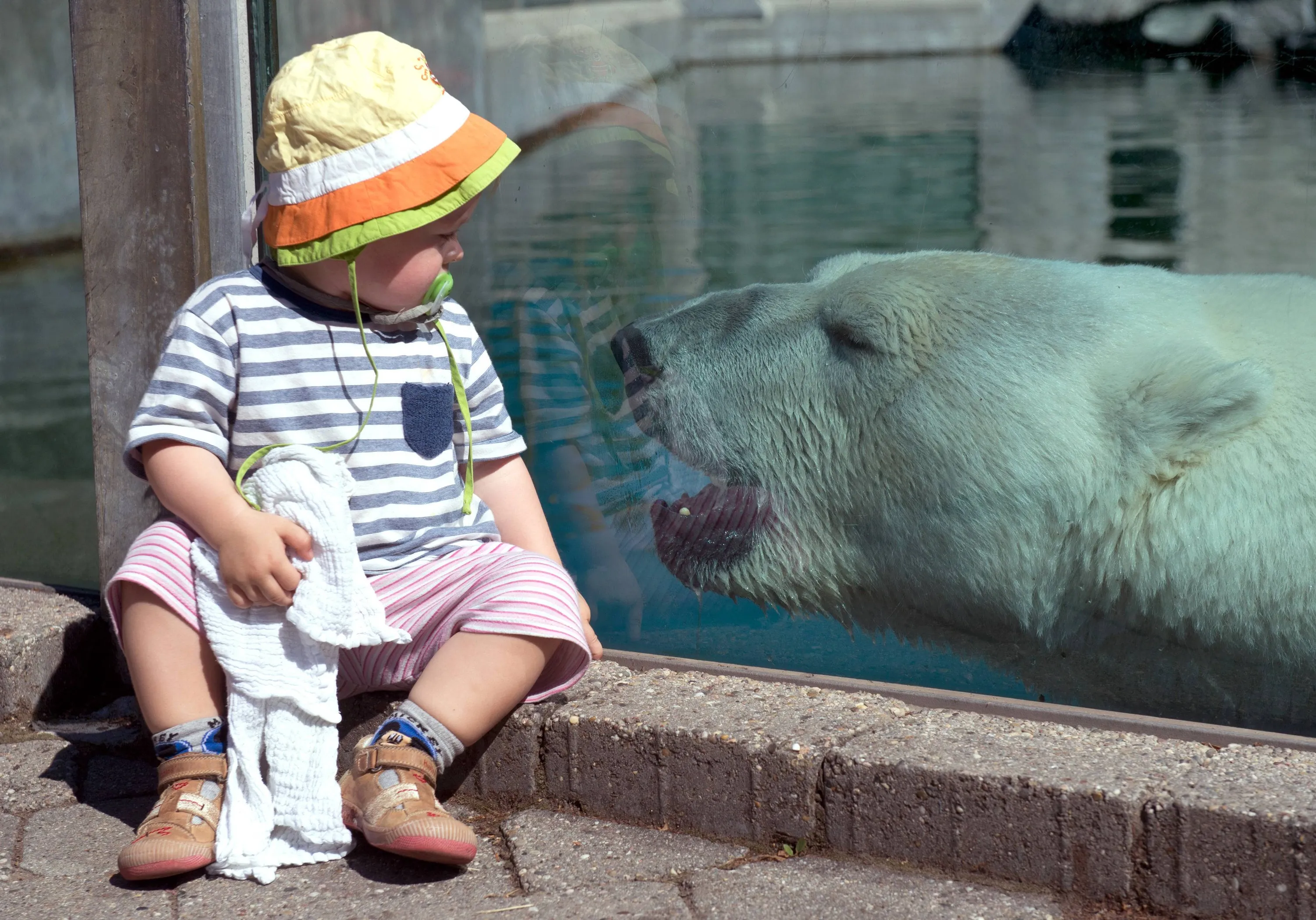 Two year old Laura sits in front of the polar bear enclosure at zoo Wilhelma in Stuttgart, Germany, Friday, Aug. 2, 2013. Temperatures soared to 39 degrees Celsius (102 Fahrenheit) in some parts of Germany. (Photo by Marijan Murat/AP Photo/DPA)