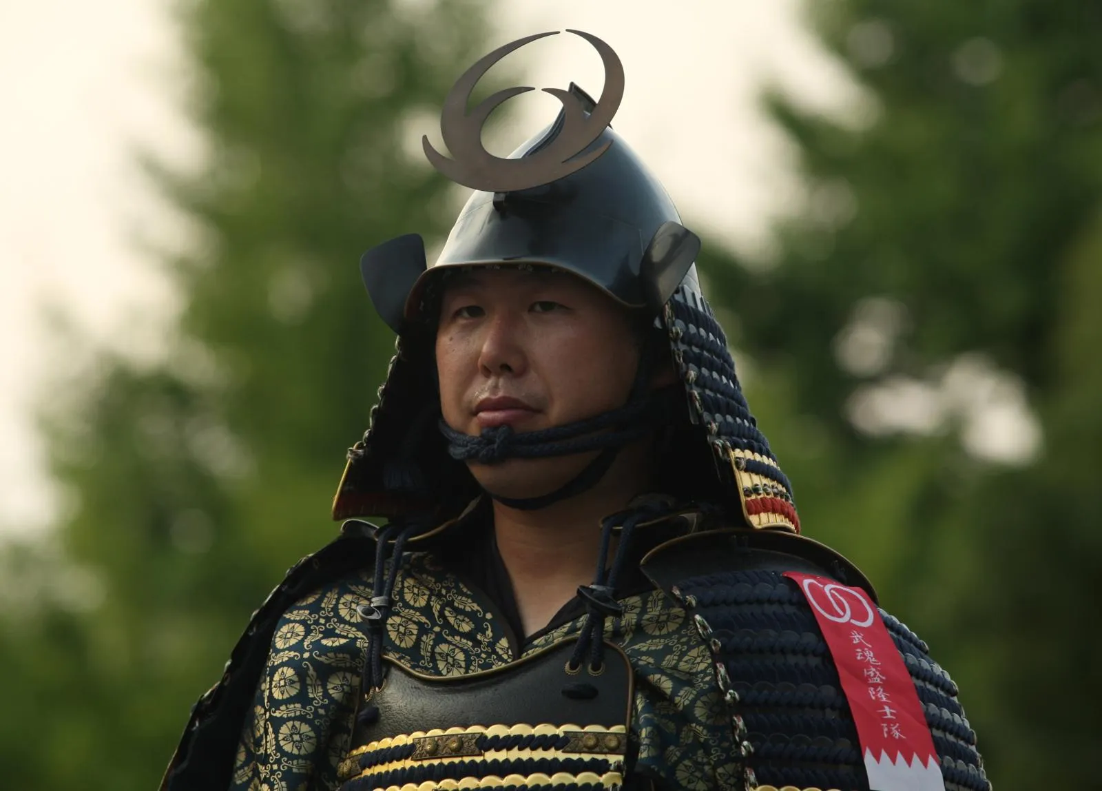 A man dressed in Samurai costume and helmet march during the annual Himeji Castle Festival on August 3, 2013 in Himeji, Japan. The parade of Castle Queens is part of the traditional matsuri festival around the UNESCO world heritage Himeji Castle. (Photo by Buddhika Weerasinghe/Getty Images)