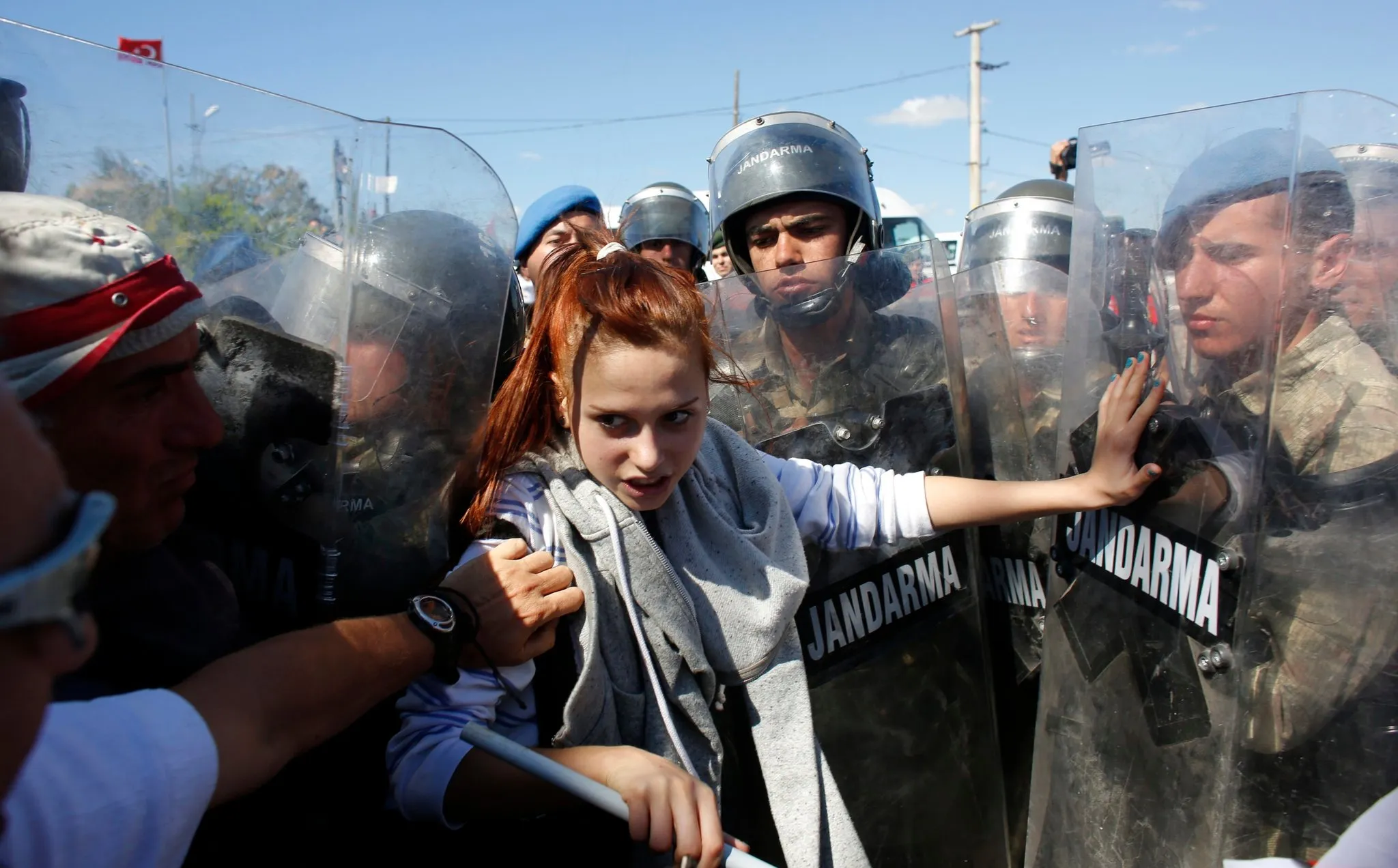 A protester stands against Turkish soldiers during clashes near Silivri, where a hearing on people charged with attempting to overthrow Prime Minister Tayyip Erdogan's Islamist-rooted government is due to take place August 5, 2013. A Turkish court on Monday sentenced a former military commander to life in prison and dozens of others including opposition members of parliament to long terms for plotting against the government, in a case that has exposed deep divisions in the country. Retired military chief of staff General Ilker Basbug was sentenced to life for his role in the “Ergenekon” conspiracy to overthrow the government of Erdogan. (Photo by Murad Sezer/Reuters)