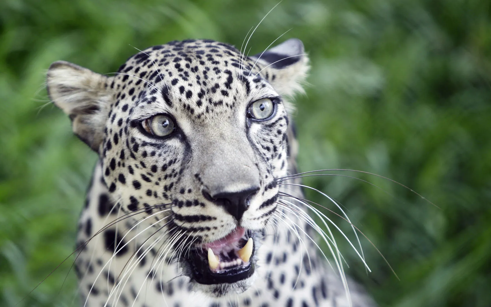 Leopard Spoti, 4 years, sits in front of the camera in Breeding Center Wildlife in Sharjah, United Arab Emirates, on August 7, 2013. (Photo by Kamran Jebreili/AP Photo)
