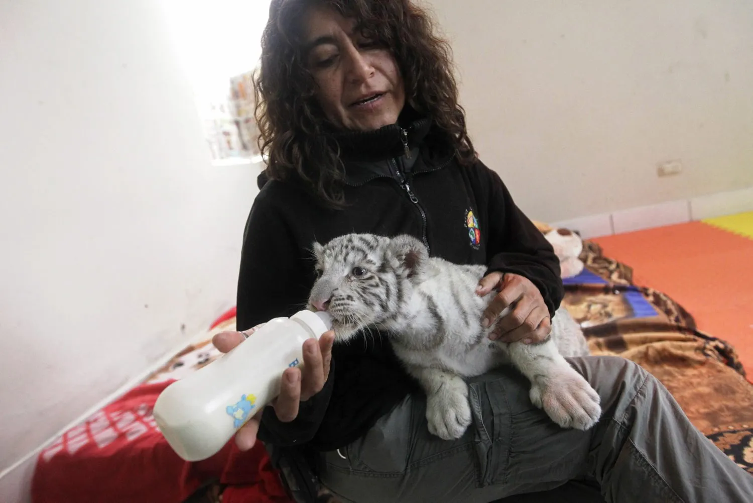 A white Bengal tiger cub is fed by veterinarian Catalina Hermoza during a press presentation at Huachipa's private Zoo in Lima August 5, 2013. The 41-day-old, yet unnamed cub was born at the park and is the first white Bengal tiger in Peru to have been born in captivity. (Photo by Mariana Bazo/Reuters)