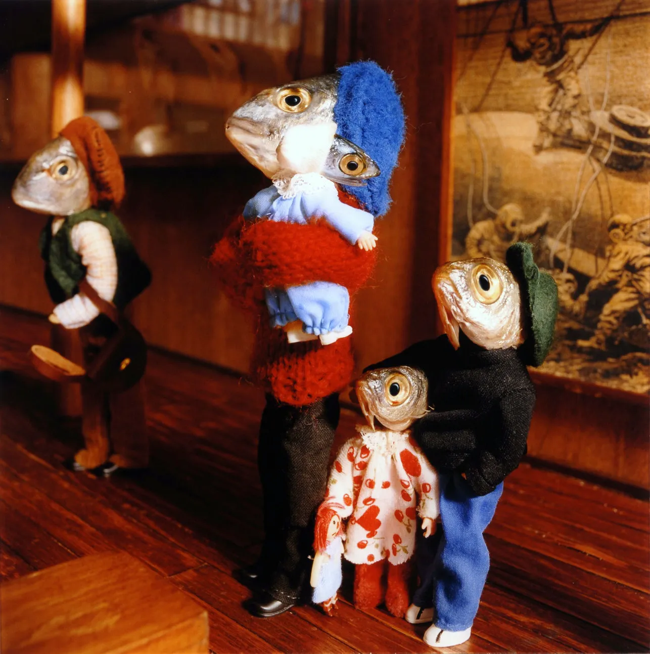 The 37-year-old French artist Anne-Catherine Becker Echivard’s latest artworks were inspired by the silent movies of Charlie Chaplin and Buster Keaton; she uses real-life smelly fish heads as her models for some photos that depict everyday life to address topics.