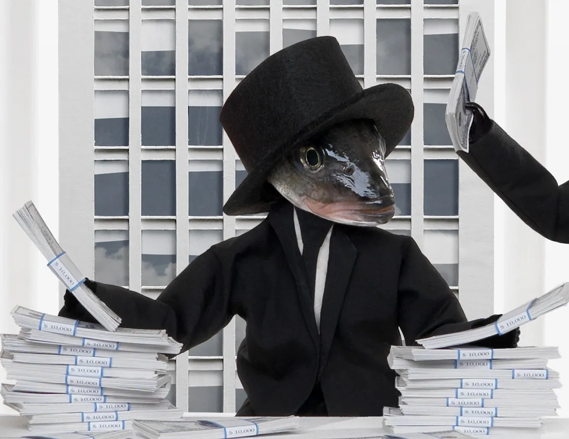 The 37-year-old French artist Anne-Catherine Becker Echivard’s latest artworks were inspired by the silent movies of Charlie Chaplin and Buster Keaton; she uses real-life smelly fish heads as her models for some photos that depict everyday life to address topics.