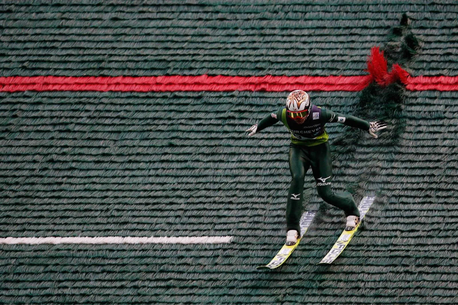 Taku Takeuchi of Japan lands his jump in the FIS Ski Jumping Grand Prix Mens Large Hill Individual Final on August 15, 2013 in Courchevel, France. (Photo by Dean Mouhtaropoulos/Getty Images)
