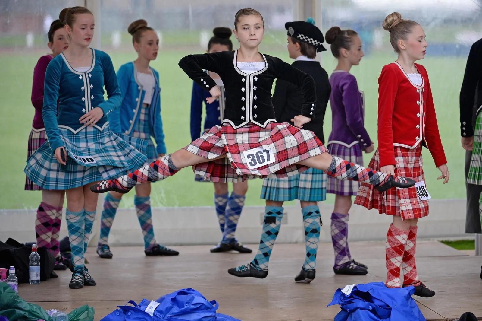 Dancers warm up before competing at the Cowal Highland Gathering on August 30, 2013 in Dunoon, Scotland. First held in 1894, the Cowal Games are held over three and are one of the largest in the world attracting competitors from Canada, USA, South Africa, Australia and New Zealand. (Photo by Jeff J Mitchell/Getty Images)