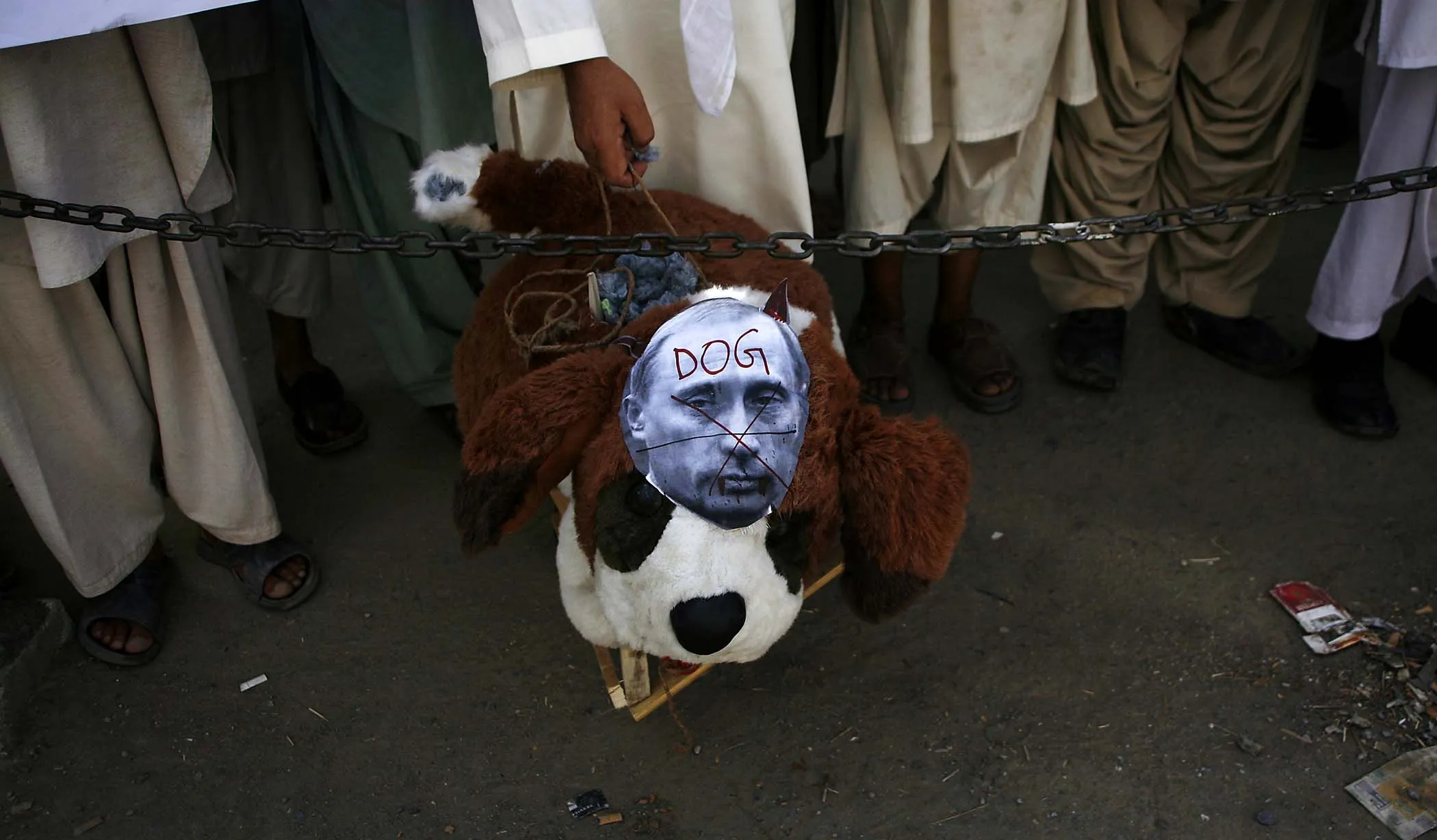 Supporters of the religious party Ahl-i-Sunnat Wal Jamaat hold an effigy of Russian President Vladimir Putin during a protest against the Syrian, Russian and U.S. governments in Quetta, Pakistan, on September 1, 2013. (Photo by Naseer Ahmed /Reuters)