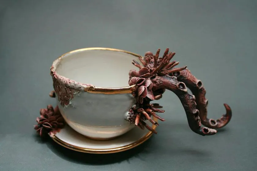 Created by ceramic artist Mary O’Malley, who studied in Philadelphia and now resides in Long Island, New York, the Bottom Feeders series is particularly inspired by childhood memories and her newly familiar surroundings next to the sea. By combining the imagery of sea creatures with the elegance of tea time, O'Malley envisions a whimsical occasion worthy of such fictional characters a Davy Jones and Alice.