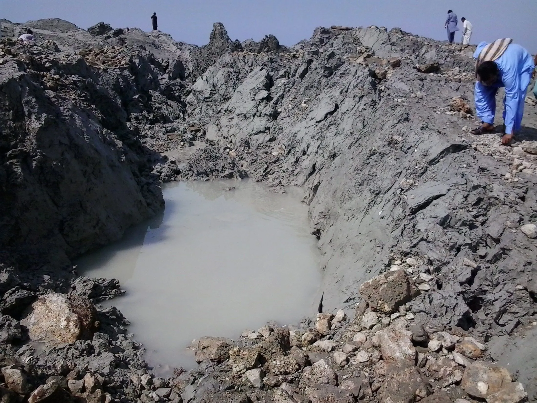 This photograph taken on September 25, 2013, shows Pakistani residents as they gather on an island that appeared some two kilometres off the coastline of Gwadar after an earthquake. A small island of mud and rock created by the huge earthquake that hit southwest Pakistan has fascinated locals but experts – who found methane gas rising from it – say it is unlikely to last long. The 7.7-magnitude quake struck on September 24, in Baluchistan's remote Awaran district, killing at least 271 people and affecting hundreds of thousands. (Photo by Behram Baloch/AFP Photo)