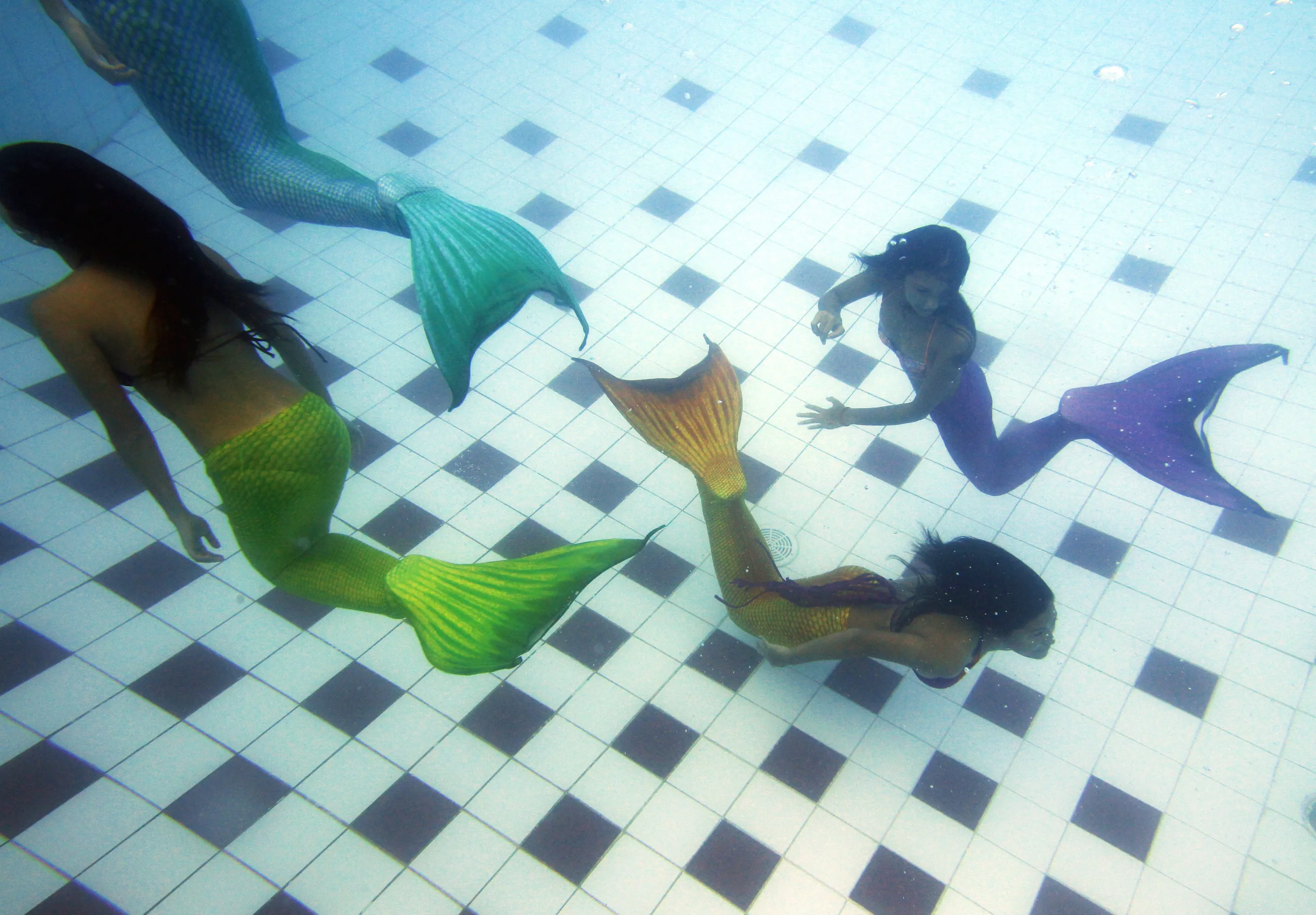 Filipino students practice during a mermaid swimming lesson by the Philippines Mermaid Swimming Academy in a private swimming pool in Makati, Manila, Philippines, 15 June 2013. The Philippine Mermaid Swimming Academy (PMSA) was created in 2012 in Boracay by Normeth Preglo of The Philippines and US swimming instructor Djuna Rocha. The swimming lessons were brought to Manila in April 2013. The price for a two-hour class is 37 US dollars. (Photo by Dennis M. Sabangan/EPA)