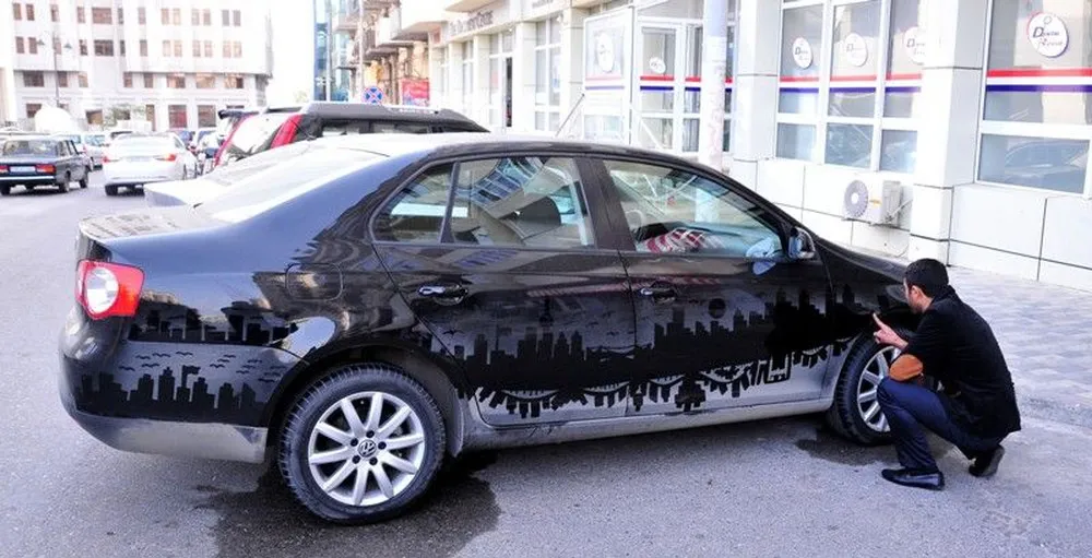 During work hours on one of the busiest streets of Baku, Azerbaijan’s capital, parking attendant Rafael Veyisov wipes off the dust on cars with his fingers, slowly contouring the shapes of tall buildings and flying birds. In his artwork, he generally illustrates real towns to educate people about other countries, but sometimes he also lets his imagination run wild and produces impressive original works. Surprised by his talent, the car owners who regularly leave their vehicles in Rafael’s care, often leave them dirty just to give him an excuse to play around, and take photos of his beautiful artworks.