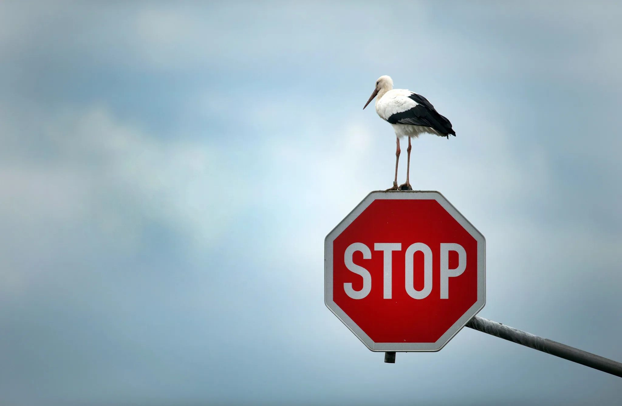A stork perches on a stop sign near Immerath, Germany, 15 October 2013, before continuing his journey to search for his favourite food targets – mice, frogs and other small animals. (Photo by Federico Gambarini/EPA)