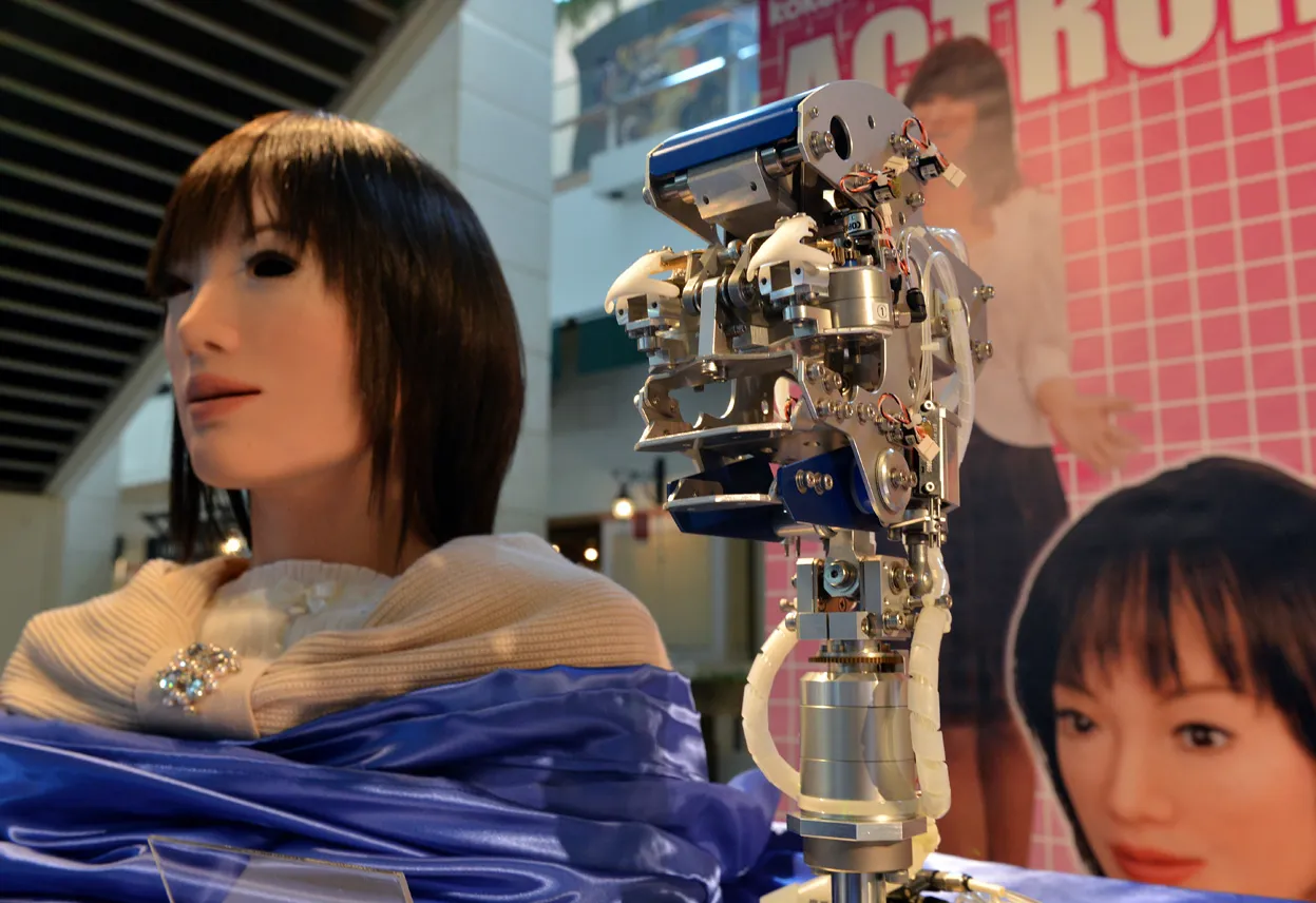 Kokoro displays the company's humanoid robot called “Actroid” (left) and its internal workings (center) at Sanrio's headquarters in Tokyo, on February 7, 2013. (Photo by Yoshikazu Tsuno/AFP Photo)