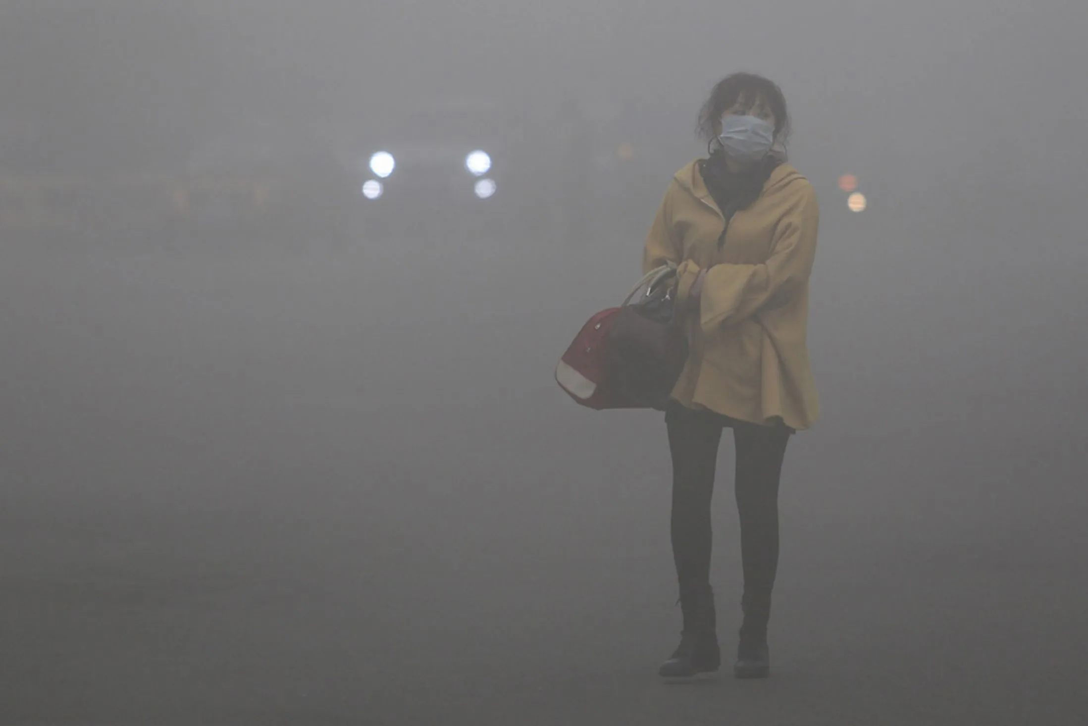 A woman wearing a face mask walks in heavy smog in Haerbin, northeast China's Heilongjiang province, on Oktober 23, 2013. Clouds of pollution blanketed Haerbin, cutting visibility to 10 metres (33 feet). (Photo by AFP Photo)