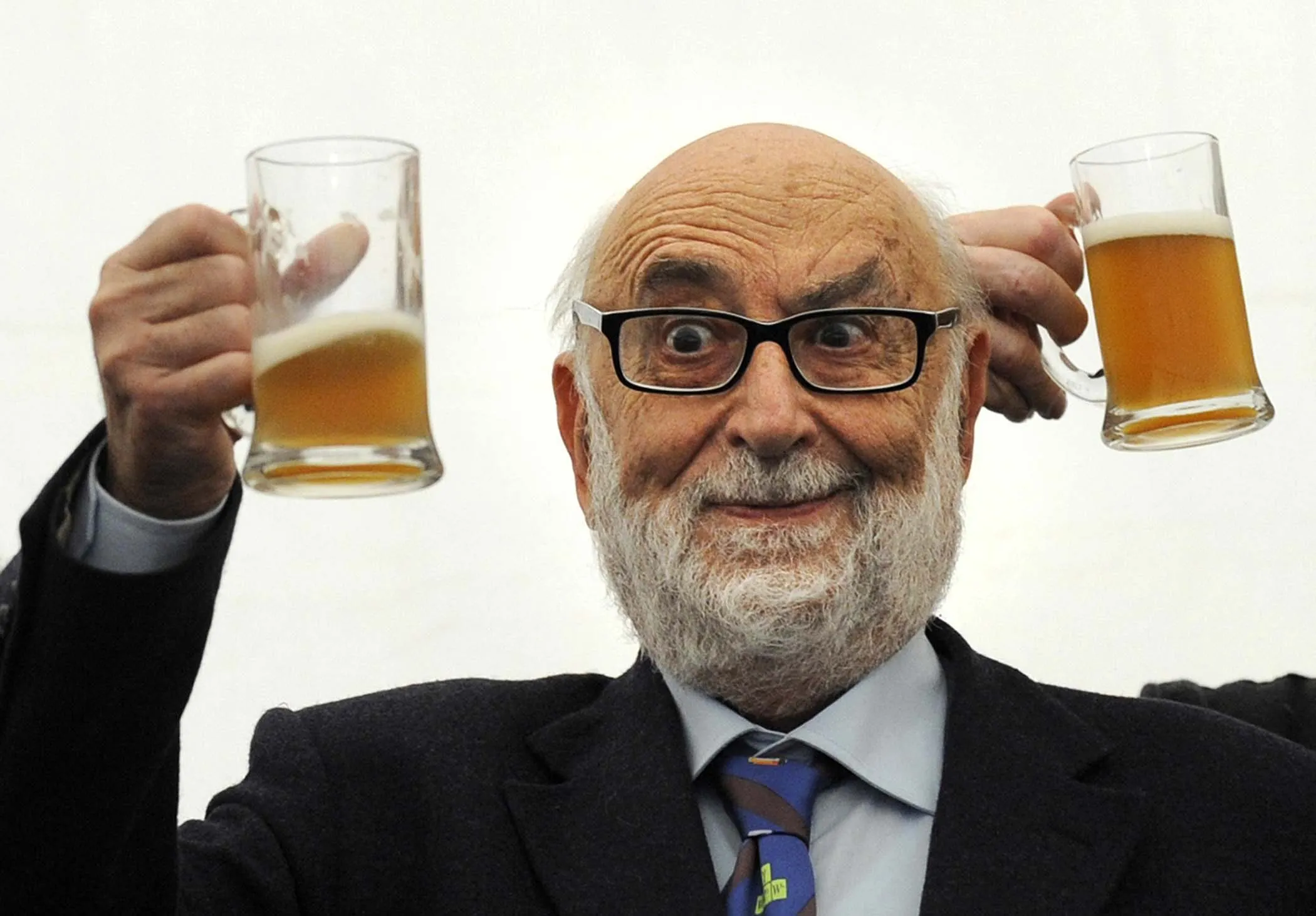 Belgian physicist Francois Englert holds a mug of beer after a news conference in Oviedo, Spain, on Oktober 24, 2013. Englert, U.S. professor Peter Higgs and the European Organization for Nuclear Research will receive the 2013 Principe de Asturias Award for Technical and Scientific Research in a ceremony on October 25. (Photo by Eloy Alonso/Reuters)
