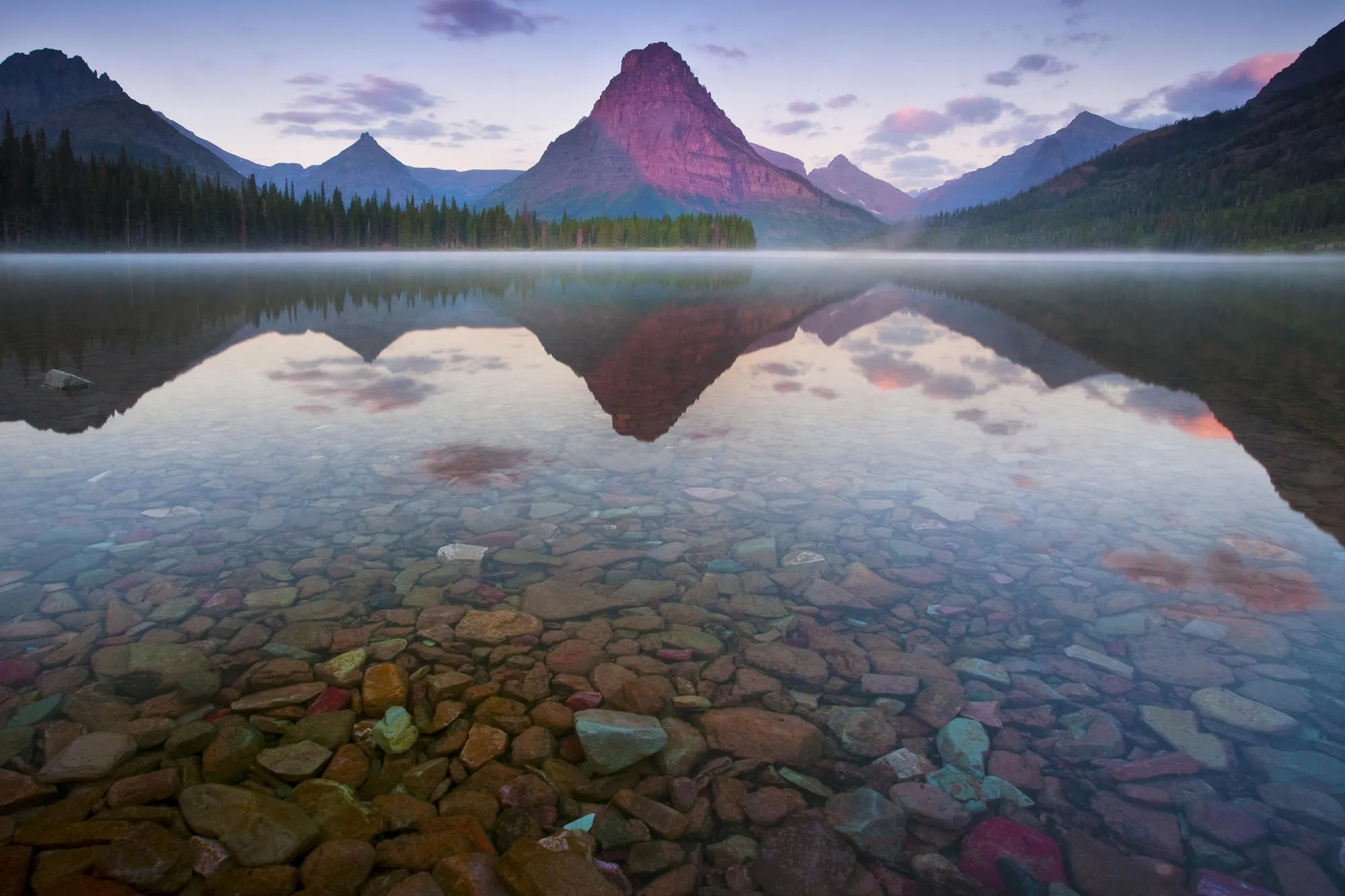 Glacier National Park is a national park located in the U.S. state of Montana, on the Canada–United States border with the Canadian provinces of Alberta and British Columbia. The park encompasses over 1,000,000 acres (4,000 km2) and includes parts of two mountain ranges (sub-ranges of the Rocky Mountains), over 130 named lakes, more than 1,000 different species of plants and hundreds of species of animals. This vast pristine ecosystem is the centerpiece of what has been referred to as the "Crown of the Continent Ecosystem", a region of protected land encompassing 16,000 square miles (41,000 km2).