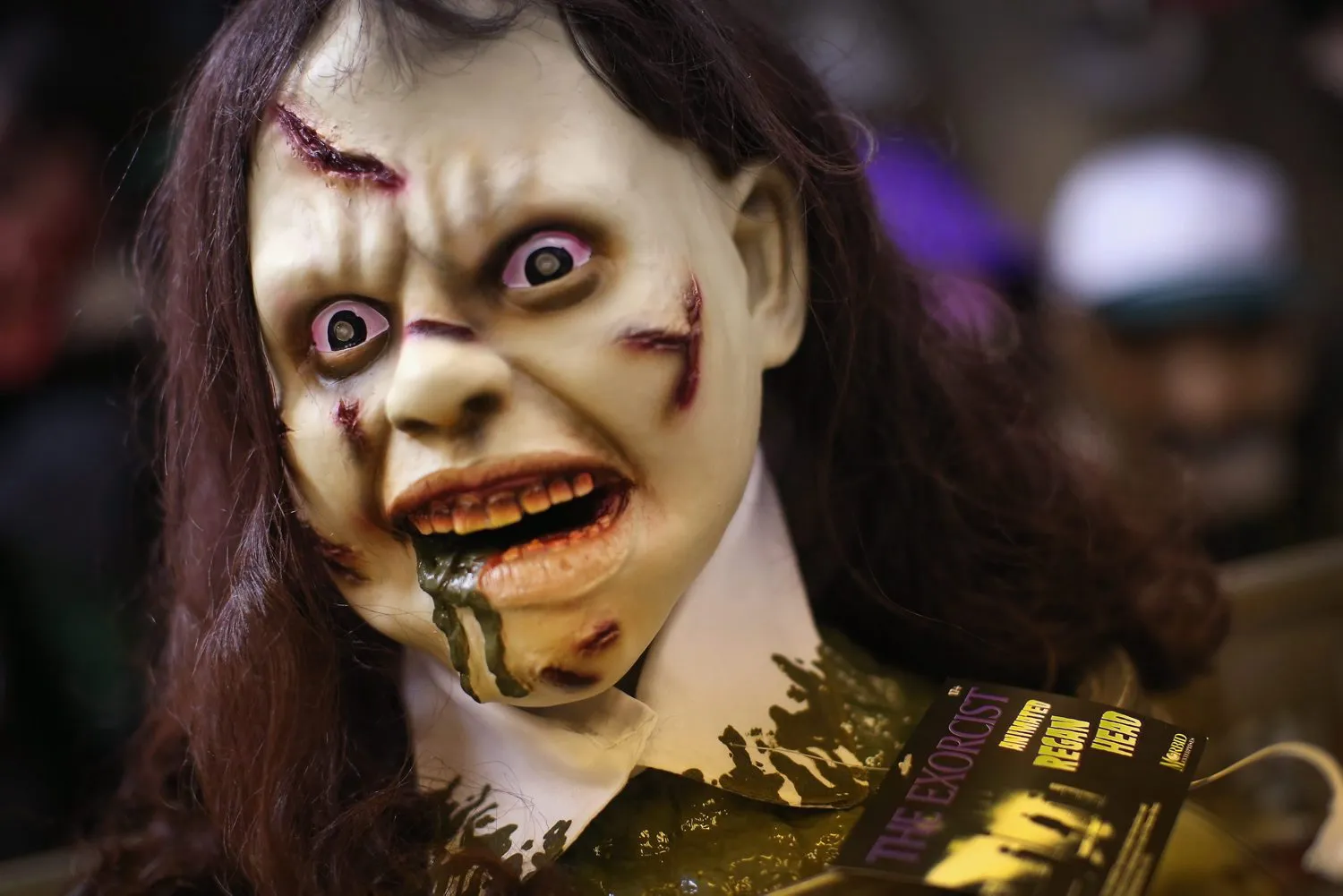 A Halloween mask called The Exorcist is offered for sale at Fantasy Costumes on October 30, 2013 in Chicago, Illinois. (Photo by Scott Olson/AFP Photo)