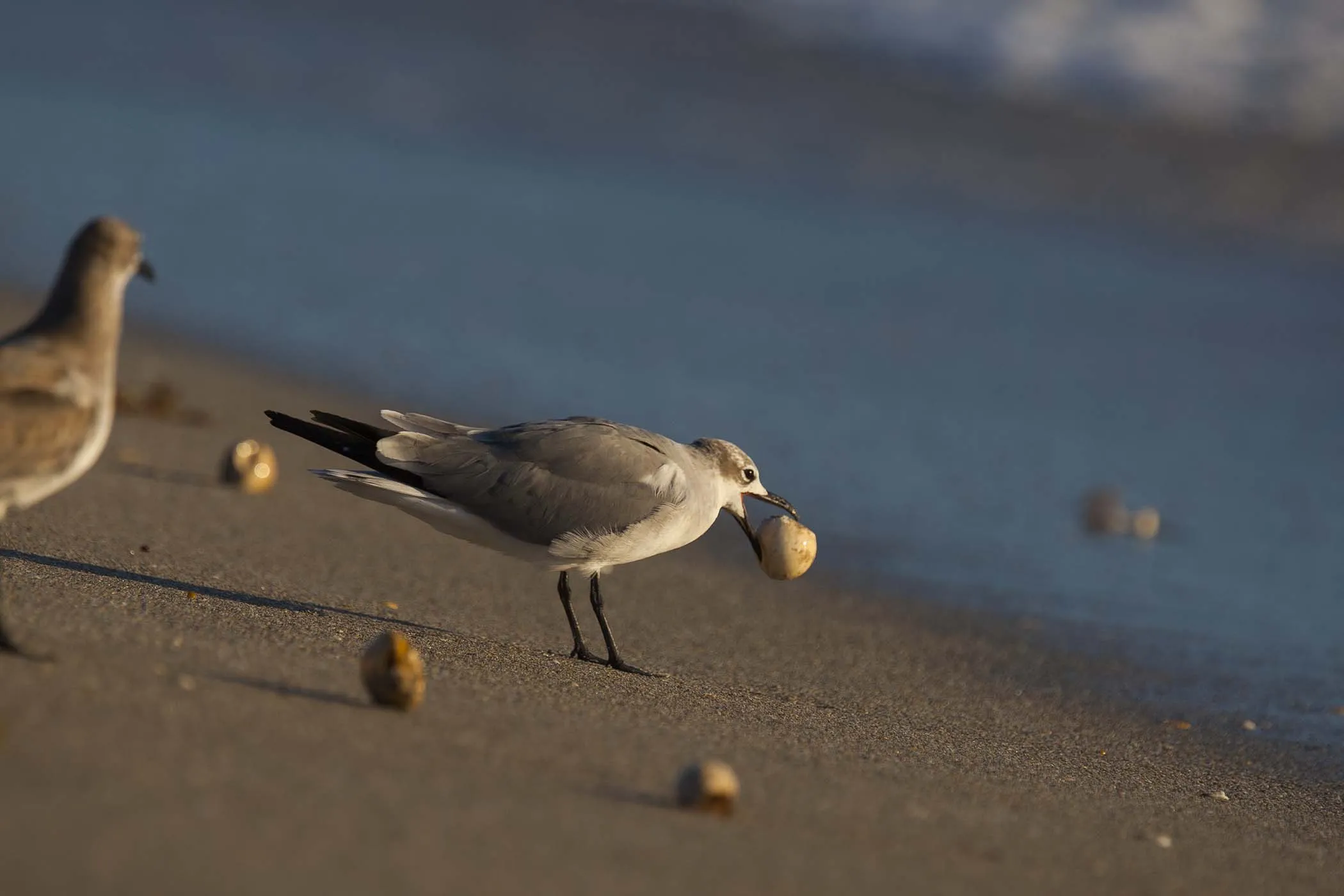 A bird makes a meal out of a sea turtle egg after the surf uncovered a nest on the beach in Coral Cove Park in Tequesta. (Photo by Greg Lovett/The Palm Beach Post)