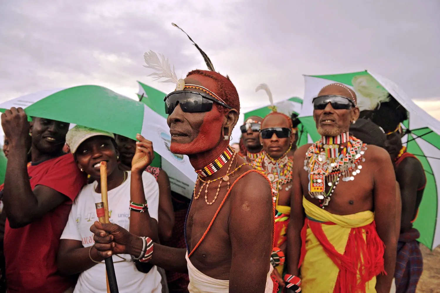 Members of the Rendile tribe are pictured before total hybrid eclipse in Sibiloi national Park in Turkana on November 3, 2013. Astronomy enthusiasts in Kenya caught a partial glimpse of a rare “Hybrid Total Eclipse” which hasn't been witnessed in Africa for over 40 years, though weather hampered a view of the complete eclipse. (Photo by Carl de Souza/AFP Photo)