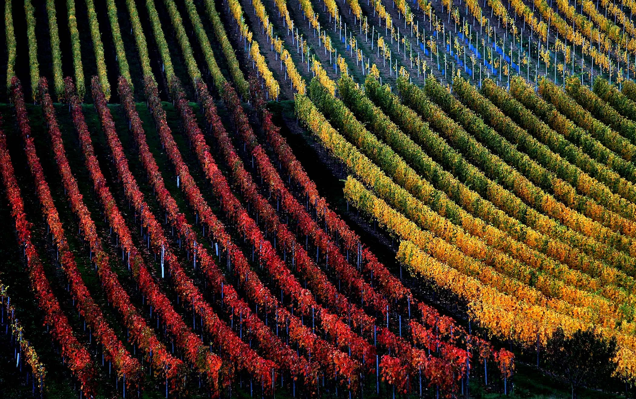 Vineyards are autumnally colored near Marktbreit, Germany, October 30, 2013. (Photo by Karl-Josef Hildenbrand/DPA)