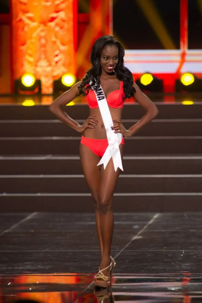 This photo provided by the Miss Universe Organization shows Hanniel Jamin, Miss Ghana 2013, competes in the swimsuit competition during the Preliminary Competition at Crocus City Hall, Moscow, on November 5, 2013. (Photo by Darren Decker/AFP Photo)