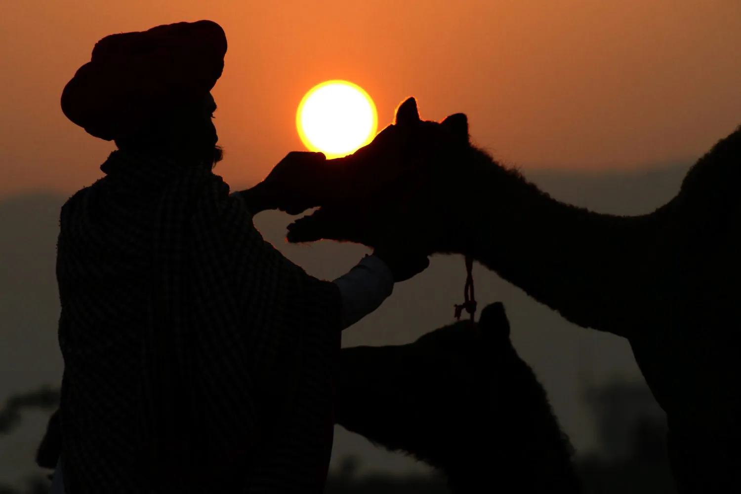 A buyer checks the teeth of a camel during the annual cattle fair in Pushkar, Rajasthan state, India, Thursday, November 7, 2013. The annual camel and livestock fair attracts thousands of livestock dealers who bring thousands of camels, horses, and cattle. (Photo by Deepak Sharma/AP Photo)
