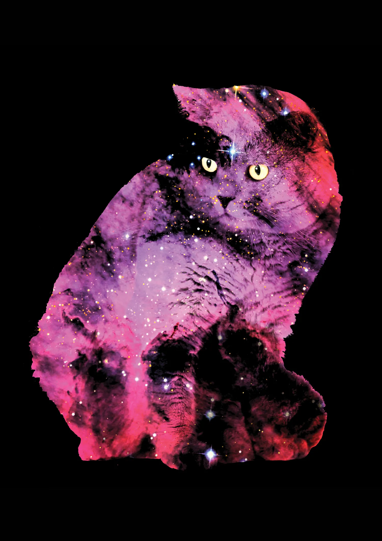 Boya Latumahina, alter ego, Zippora Lux is a Design student studying at Central St Martins in London. She has created these space age cats by combining two of her favourite things, cats and telescopic photographs.