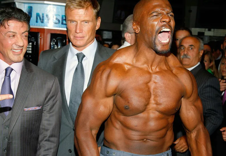 The cast of The Expendables, L-R: actors Jason Statham, Sylvester Stallone, Dolph Lundgren and Terry Crews attended the ringing of the opening bell at the New York Stock Exchange on Wall Street in NYC today. There is something so unsexy (not to mention suspect) about a male who constantly takes off his shirt to flex his muscles while in the company of other alpha males.