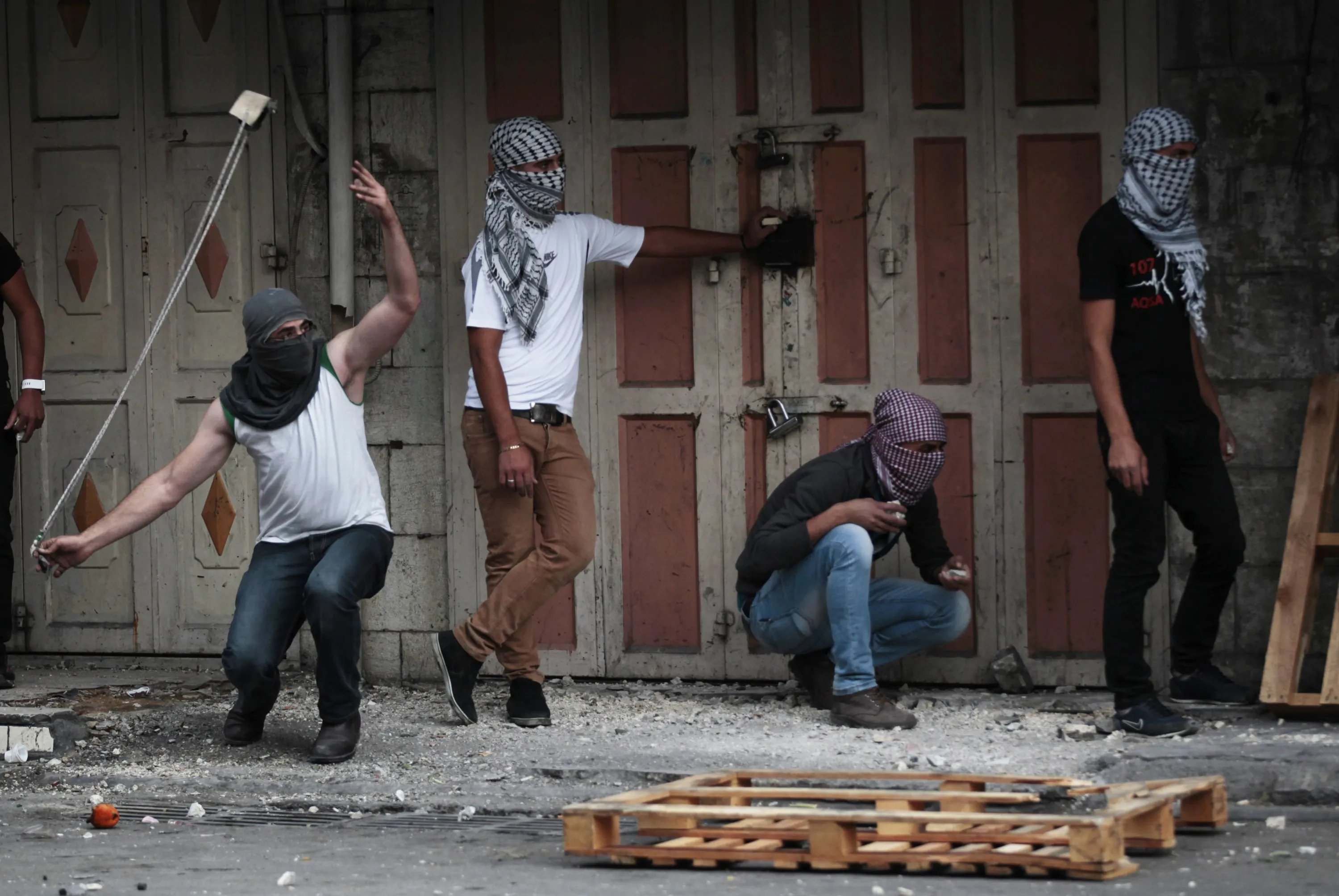 A Palestinian protester uses a sling to throw a stone during clashes with Israeli security officers following the funerals of three Palestinians, in West Bank city of Hebron November 27, 2013. Israeli security officials said their forces killed three Palestinian militants on Tuesday who were part of an al Qaeda-linked network in the West Bank. (Photo by Ammar Awad/Reuters)