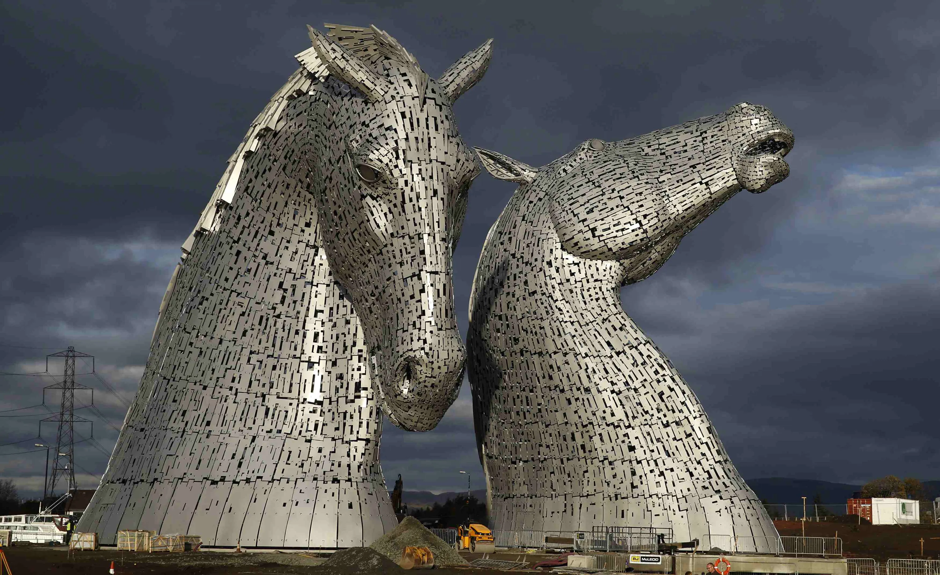 The Kelpies, two 30 meter high stainless-plate horse heads by sculpture Andy Scott are seen in Falkirk, Scotland November 27, 2013. (Photo by Russell Cheyne/Reuters)