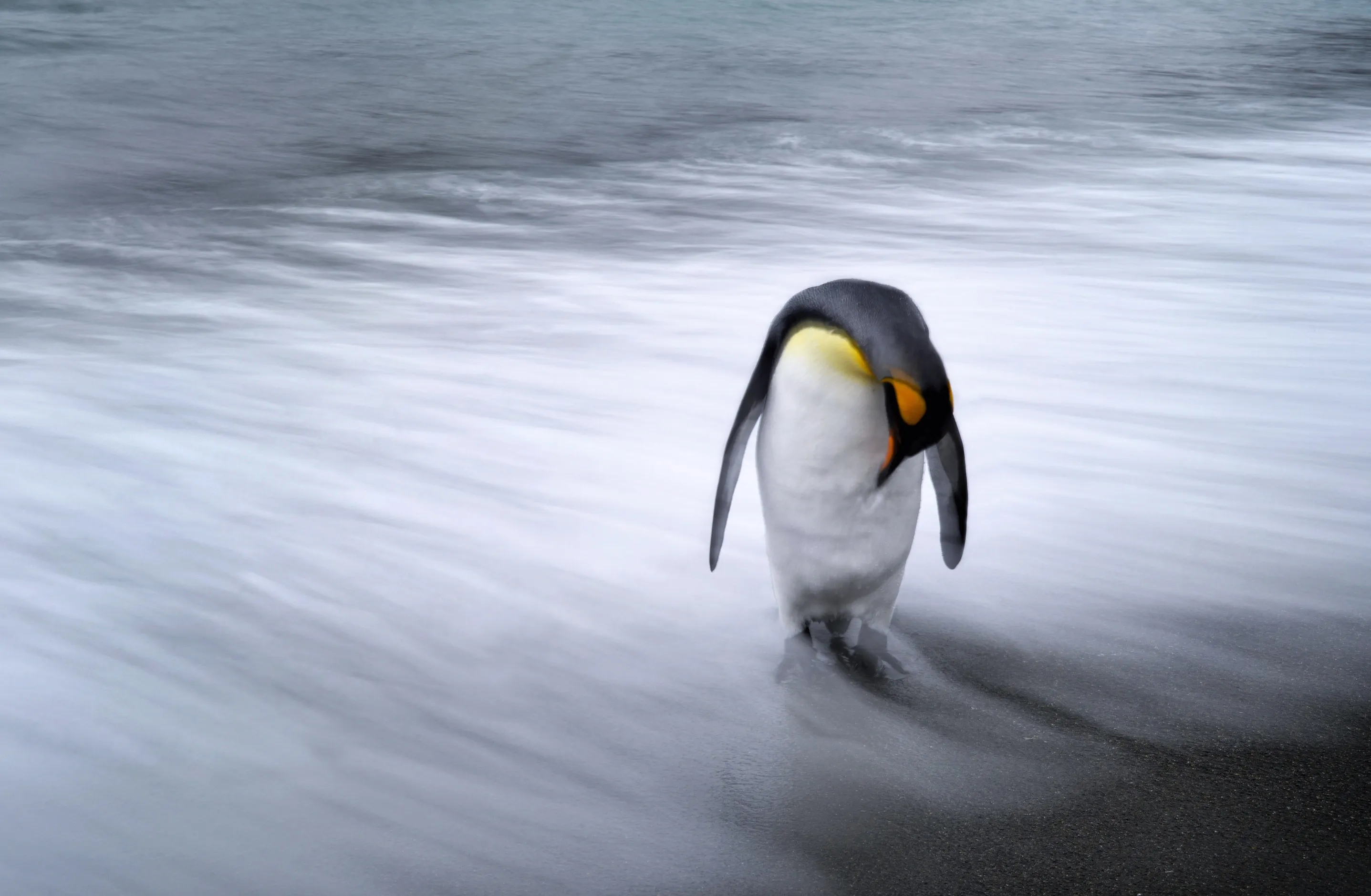 “Lone Penguin”. A long penguin standing in the surf on South Georgia Island. Photo location: South Georgia Island. (Photo and caption by Max Seigal/National Geographic Photo Contest)