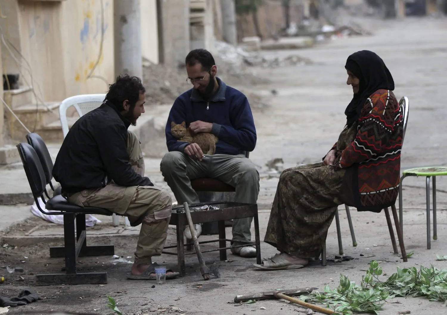 A “Free Syrian Army” fighter pats a cat as he sits with a fellow fighter and an elderly woman in Deir al-Zor, eastern Syria December 4, 2013. (Photo by Khalil Ashawi/Reuters)