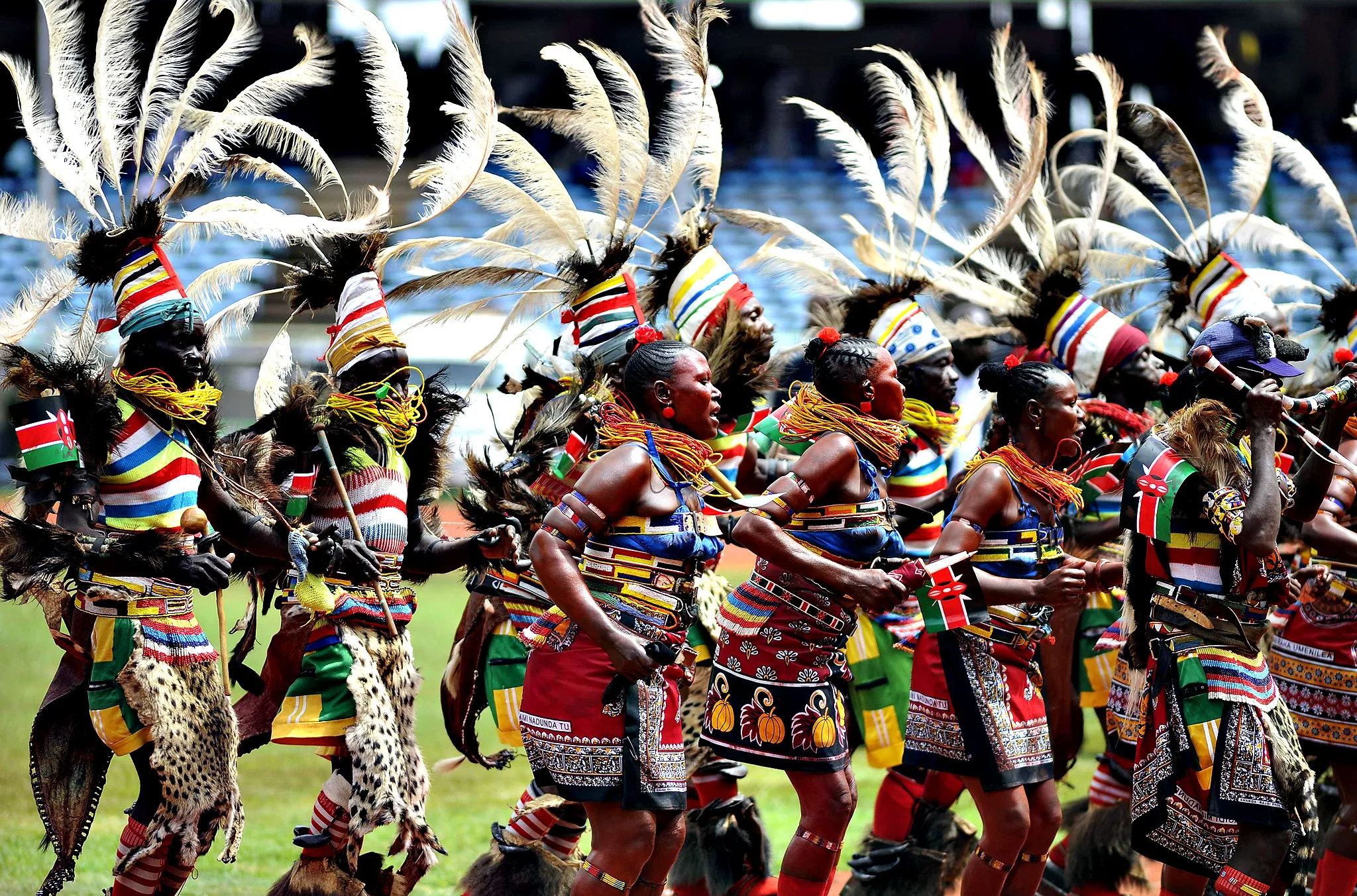 Traditional dancers perform at the Kasarani stadium in Nairobi on December 12, 2013 during celebrations marking half a century of independence from Britain. Kenyans marked 50 years of independence, celebrating progress of the regional economic powerhouse but also struggling to shake off a legacy of corruption, inequality and ethnic violence. (Photo by Simon Maina/AFP Photo)