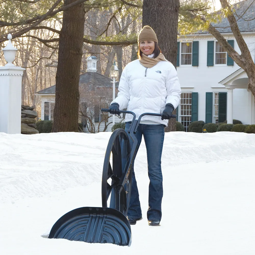 The Wovel could possibly be the most advanced human snow removal machine ever created, next to simply getting someone else to do it. The revolutionary wheel design reduces the risks associated with heart attacks and back injuries because it uses adjustable leverage and your own body weight to push, lift, and throw snow up to 18" deep. The best feature about the Wovel is compared to a gas-powered snow blower, this one will always start.