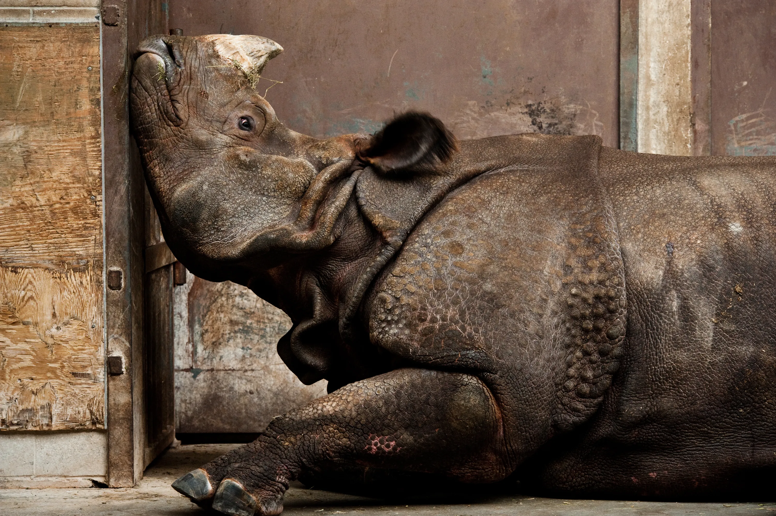 “Honorable Mention”. An Indian rhinoceros, far from home and stuck inside with late-winter blues at the Toronto zoo. Photo location: Toronto, Ontario, Canada. (Photo and caption by Stephen De Lisle/National Geographic Photo Contest)