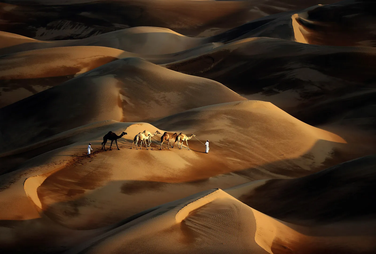 Tribesmen lead their camels through the sand dunes of the Liwa desert, 220 kms west of Abu Dhabi, on November 23, 2013. (Photo by Karim Sahib/AFP Photo)