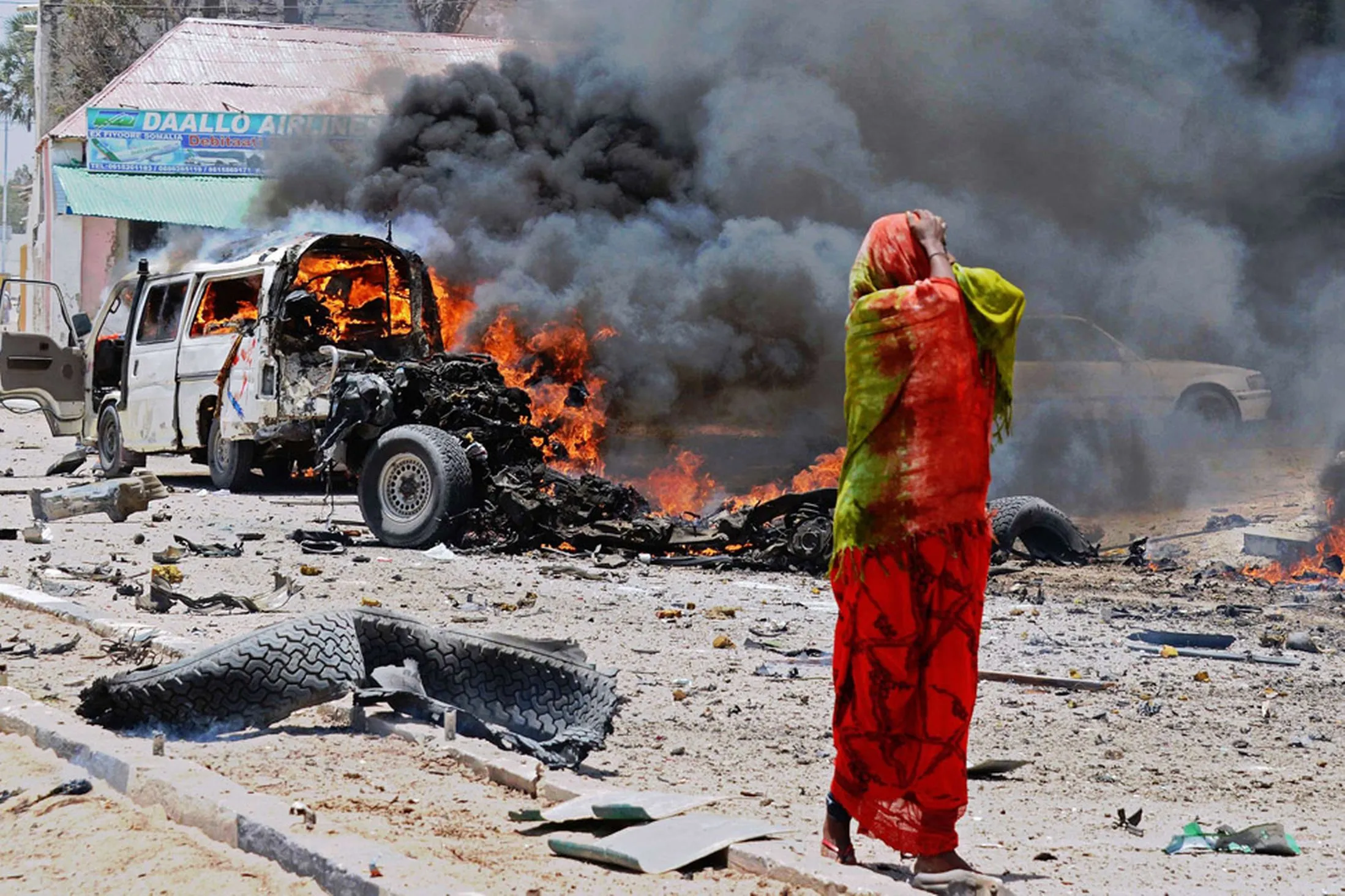 A Somali woman reacts on March 18, 2013 near the site of a car bomb in central Mogadishu. (Photo by Mohamed Abdiwahab/AFP Photo)