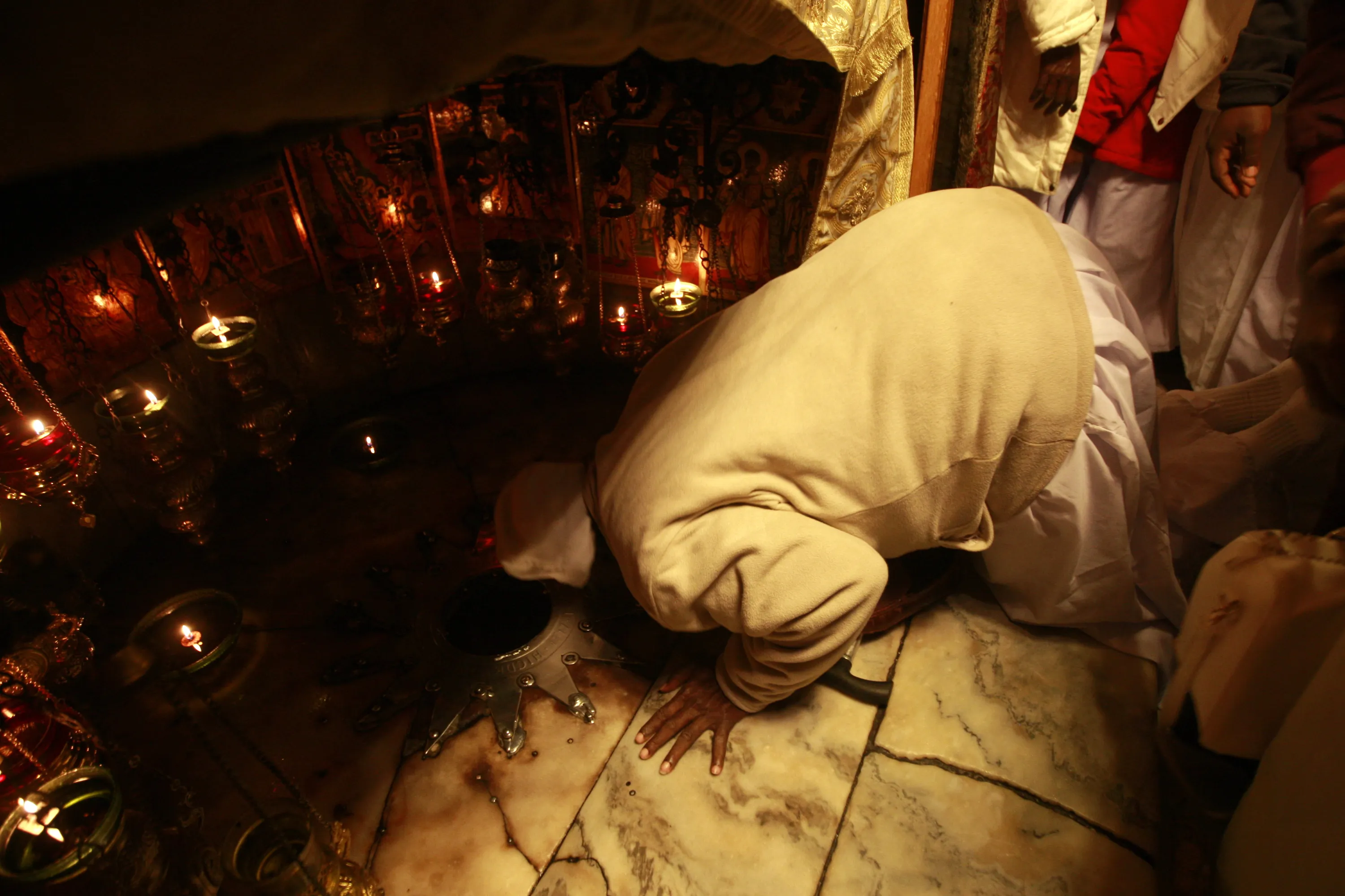 Christian pilgrim worshippers from Nigeria pray in the Grotto of the Church of Nativity, traditionally believed by Christians to be the birthplace of Jesus Christ, in the West Bank town of Bethlehem on Christmas Eve, Tuesday, December 24, 2013. (Photo by Majdi Mohammed/AP Photo)