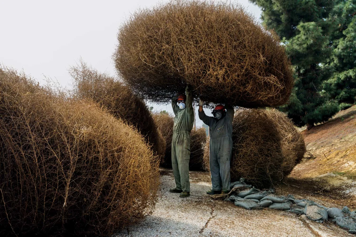 Mary McPeak, Photography Research Editor: “Having worked with Diane Cook and Len Jenshel on several stories, the tumbleweeds story is a favorite of mine. The photograph of the two masked workers in California holding a compact car-size tumbleweed above their heads catches your eye and makes you smile. The men seem to be surrounded by dangerous tumbleweeds almost inching toward them. It also illustrates what an invasive problem the weeds have become”. (Photo by Diane Cook/Len Jenshel/National Geographic)