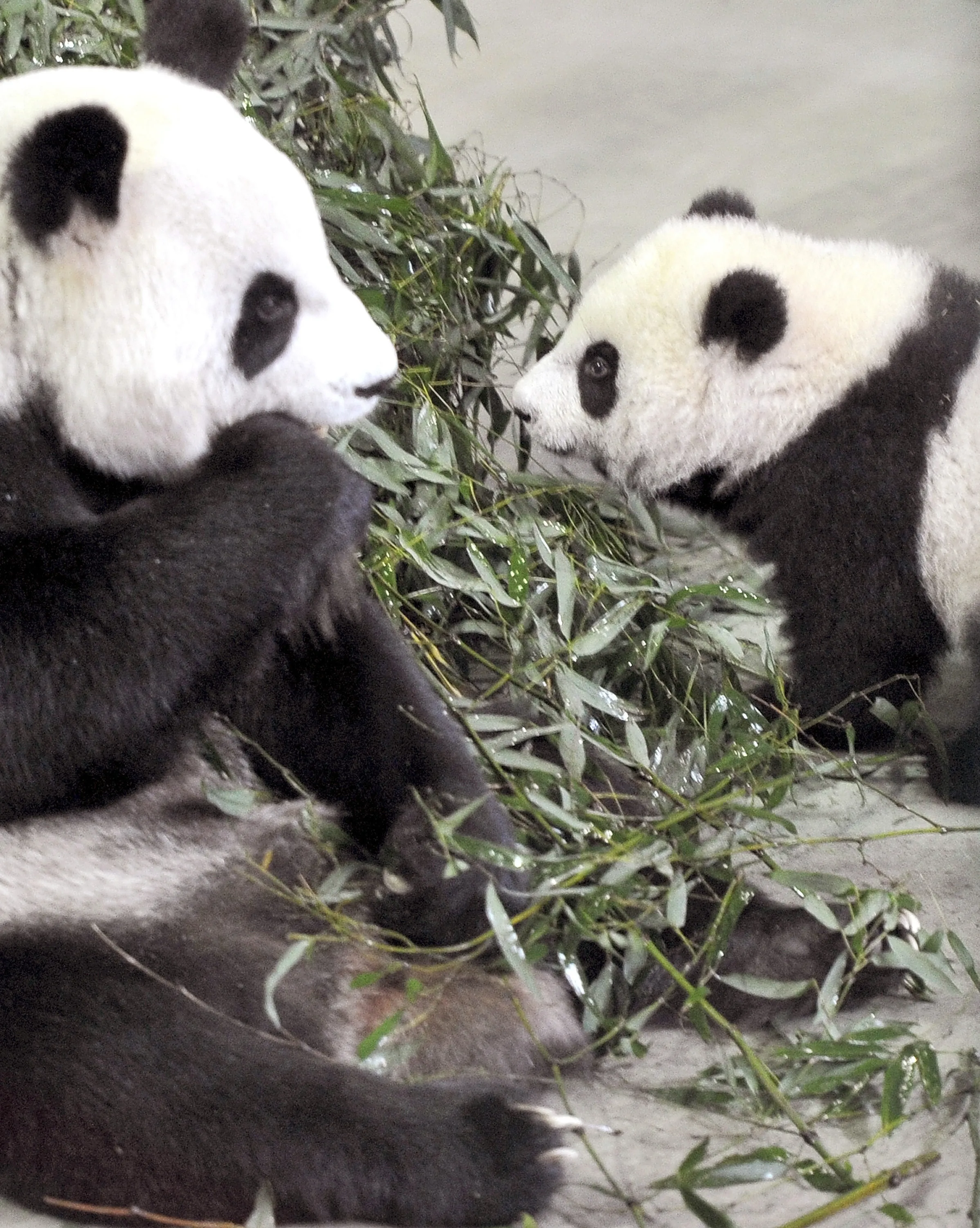 Yuan Zai (R), the first Taiwan-born baby panda, is seen next to its mother Yuan Yuan inside an enclosure at the Taipei City Zoo in Taipei, January 6, 2014. (Photo by Patrick Lin/Reuters)