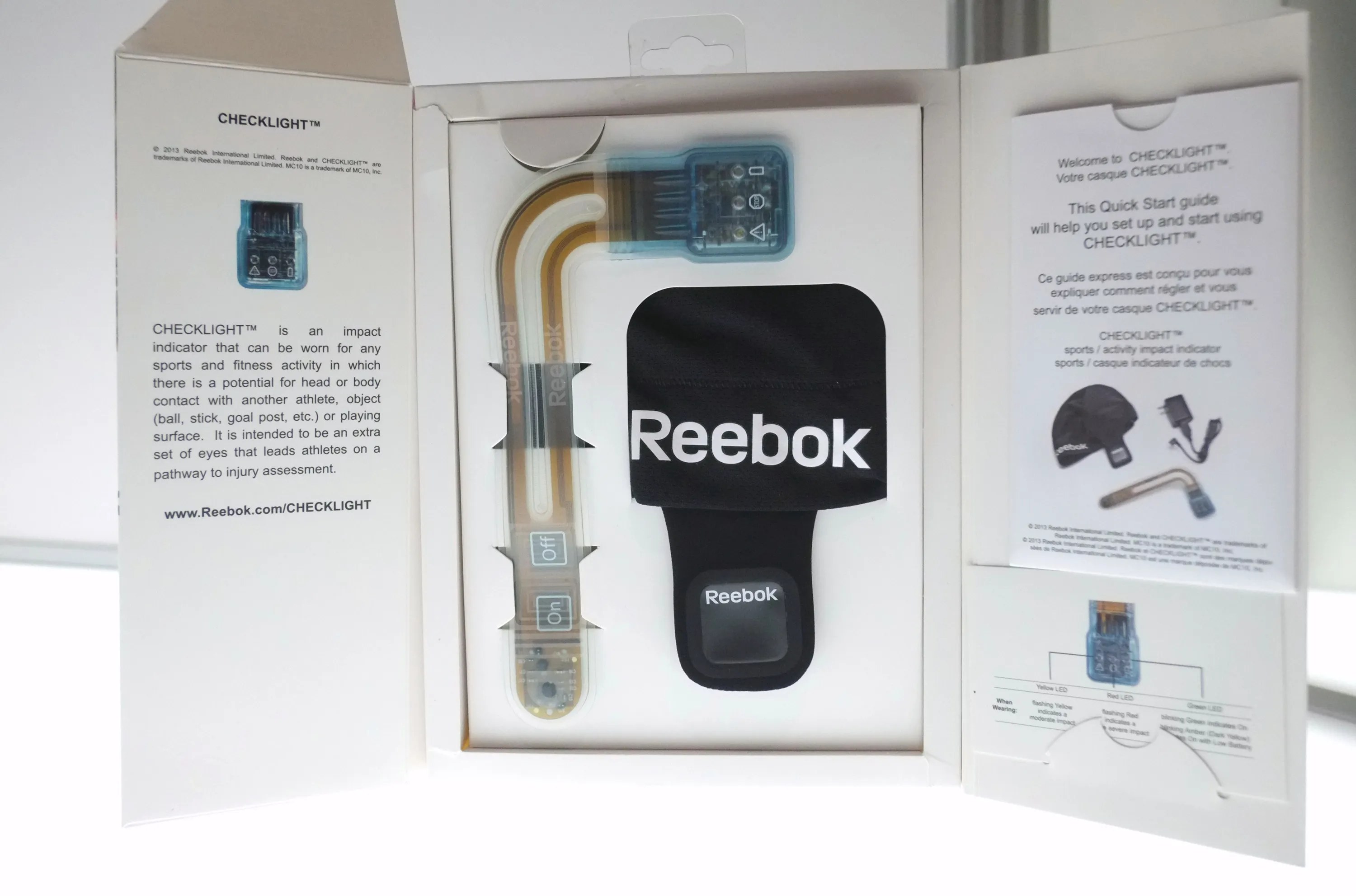 Reebok's Checklight impact indicator displayed at the first press event “CES Unveiled” at the Mandalay Bay Convention Center prior to the 2014 International CES in Las Vegas, Nevada on January 05, 2014. (Photo by Joe Klamar/AFP Photo)
