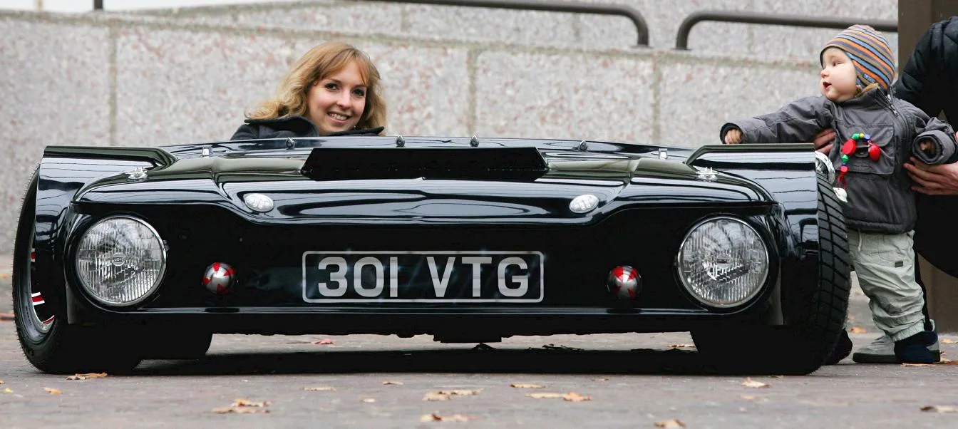 At 19 inches high, the Flatmobile is the world’s lowest street legal car. It just so happens to be a replica of the Batmobile and has a jet engine that shoots 20 foot flames out of the rear! Ground clearance is at a whopping 2 inches! You could probably park this thing under a large SUV at your local supermarket.