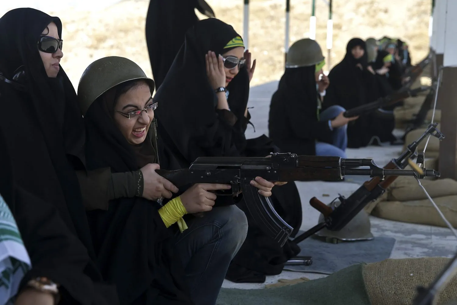 In this Thursday, August 22, 2013 photo, a female member of the Basij paramilitary militia aims her rifle as a trainer assists her during a training session in Tehran, Iran. (Photo by Ebrahim Noroozi/AP Photo)