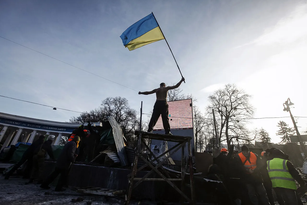 A pro-European integration protester stands with a national flag on a barricade during a rally in Kiev January 20, 2014. (Photo by Vasily Fedosenko/Reuters)