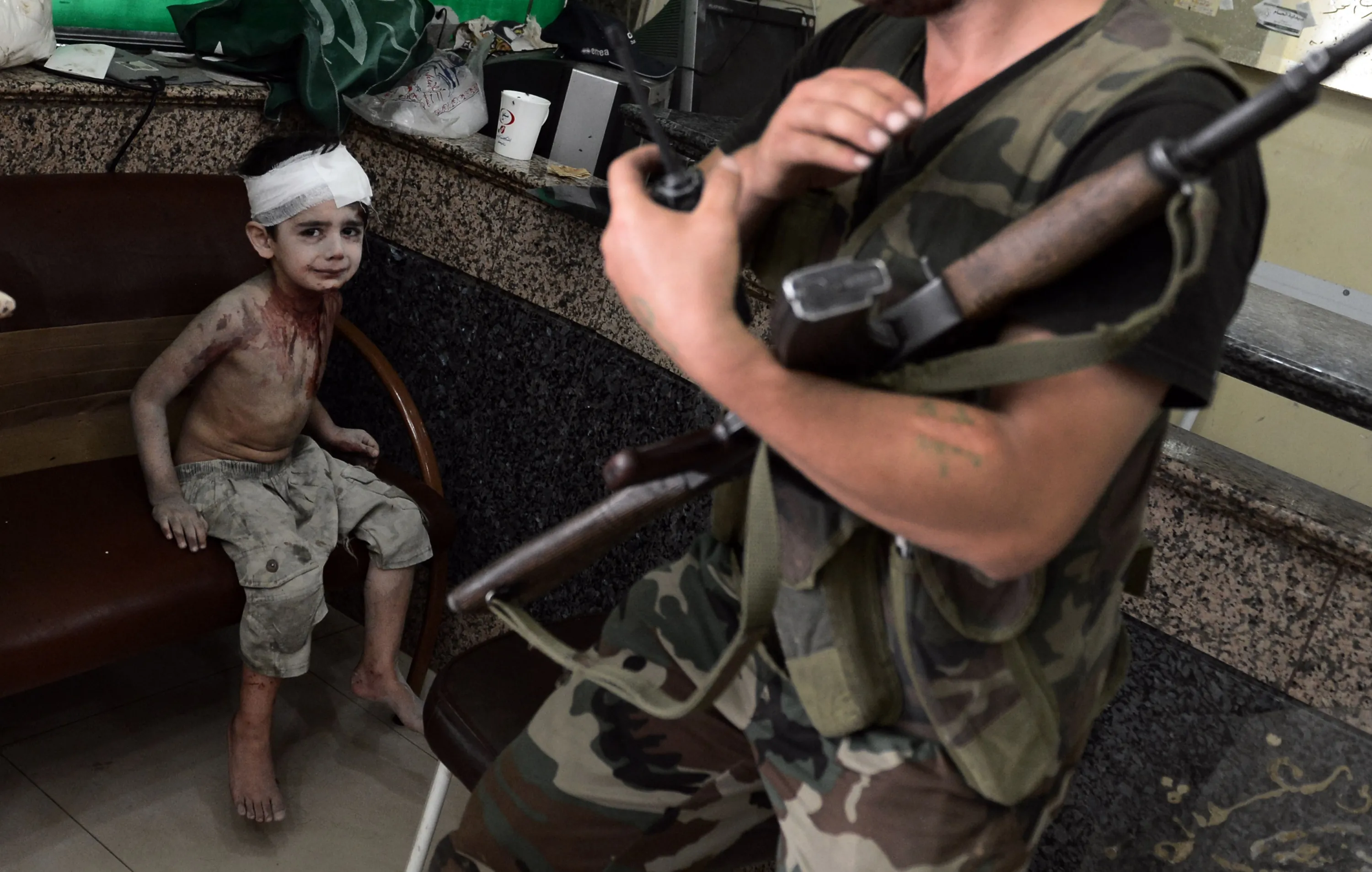 A Syrian boy who was injured when a shell, released by regime forces, hit his house on August 24, 2012, waits to be treated at a hospital in Syria's northern city of Aleppo. (Photo by Aris Messinis/AFP Photo)