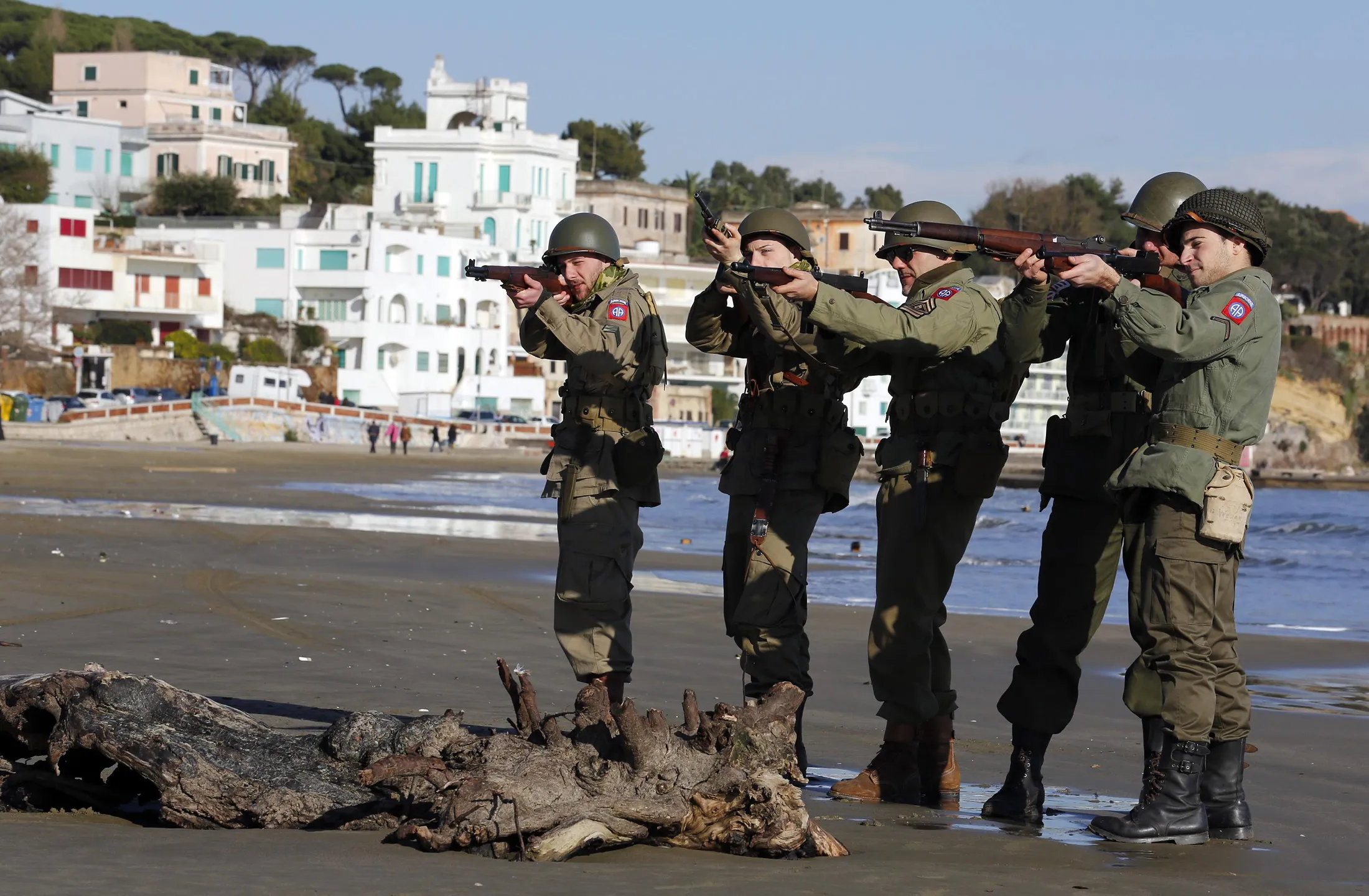 Volunteers wearing the uniform of the U.S. army pose as they participate in the re-enactment of a World War Two landing to mark its 70th anniversary in Anzio, near Rome, January 25, 2014. (Photo by Stefano Rellandini/Reuters)