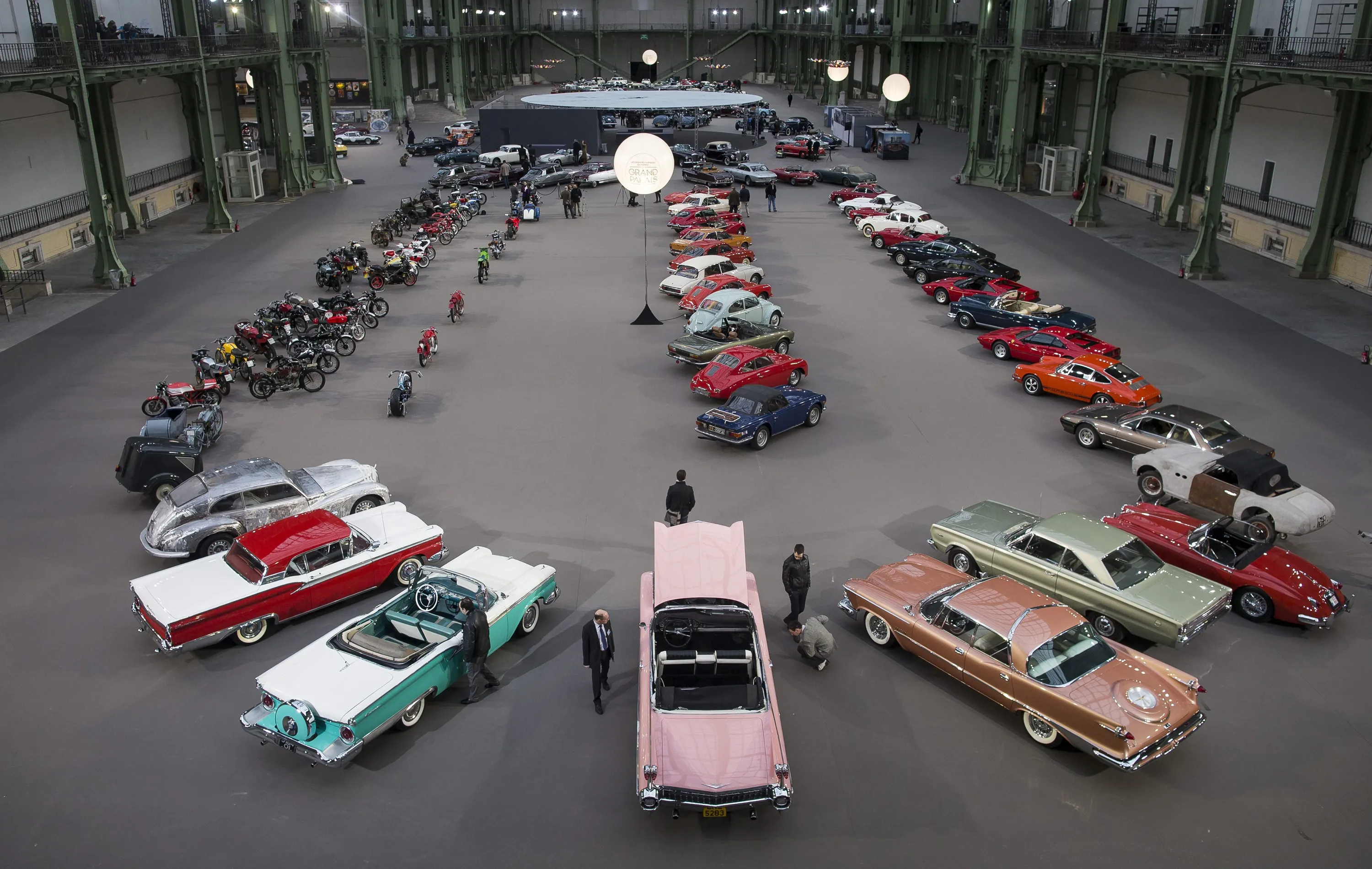 Classic cars and motorcycles are displayed during a press preview before a mass auction of vintage vehicles organised by Bonhams auction house as part of 'Retromobile Week' at the Grand Palais in Paris, France, 05 February 2014. (Photo by Ian Langsdon/EPA)