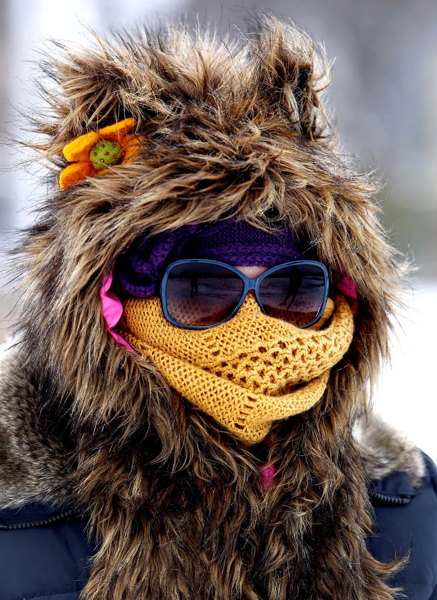 Hillari Grimes watches her children sled at Douglas Park in Oklahoma City, on February 6, 2014. (Photo by Steve Gooch/The Oklahoman)