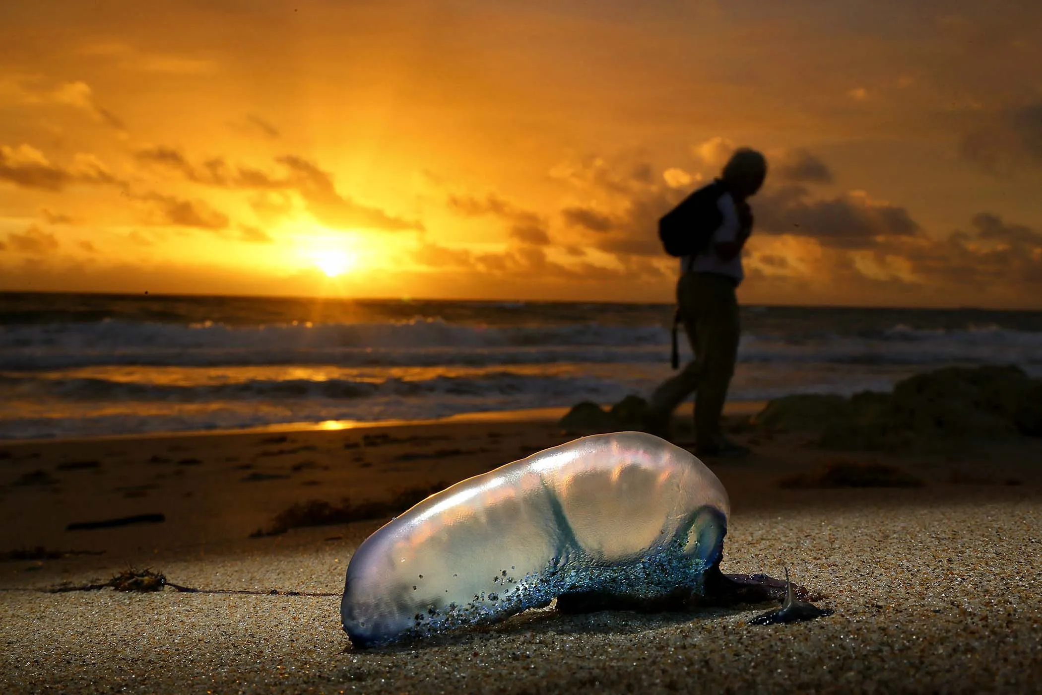 A Portuguese man-of-war sits on Midtown Beach in Palm Beach at sunrise, on February 5, 2014. (Photo by Lannis Waters/The Palm Beach Post)