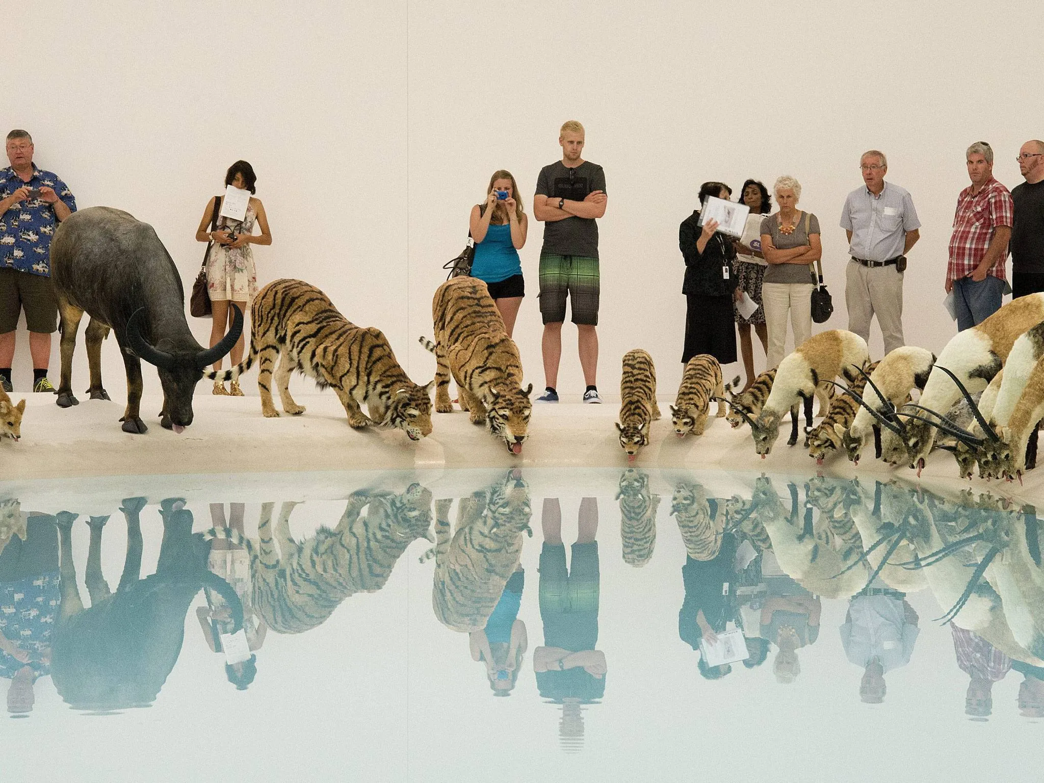 Visitors enjoy “Falling Back To Earth” exhibition created by Chinese artist Cai Guo Qiang at the Gallery of Modern Art (GOMA) in Brisbane. (Photo by Dave Hunt/EPA)